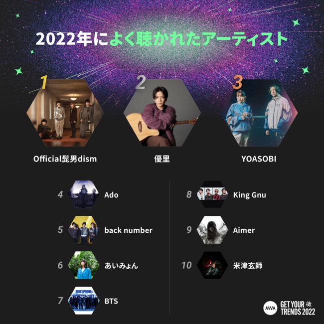 2022年によく聴かれた曲1位は優里の「ベテルギウス」。AWAが“自分だけの音楽史”を振り返る特設サイトを公開 - 画像一覧(3/5)