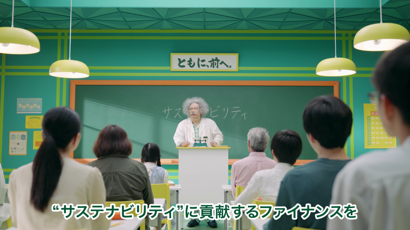 岡崎は担任の“岡崎体育”先生をはじめ、国語、算数、理科、社会を教える4人の教師まで1人で演じ、それぞれの教科にまつわるサステナビリティの話題やSMBCグループの取り組みを幅広い世代の生徒に向けてわかりやすく解説。