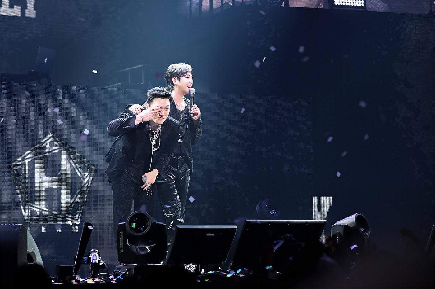 後半は懐かしい曲やライブでは外せない定番曲を織り混ぜながらラストスパート。本編終わりでは一度控室に戻った2人をカメラが追いかけていく場面も。その場で「トイレに行ってくる」と席を外したグンソクがひとりでアンコールを始めBIG BROTHERが慌ててステージに戻るなど、TEAM Hならではの遊び心溢れる姿も健在。あっという間に全18曲を駆け抜け最高潮のボルテージで幕を閉じた。