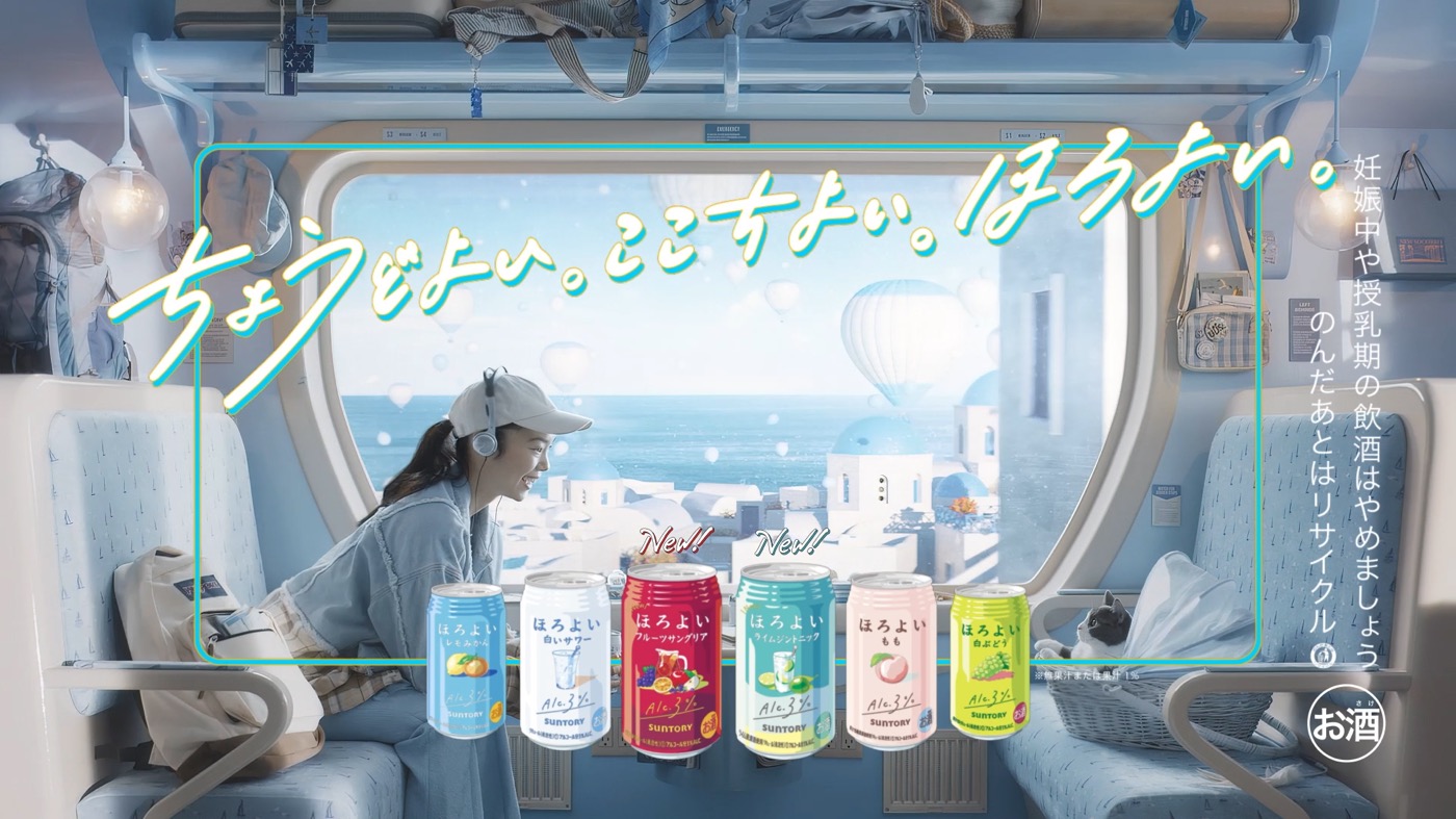「ちょうどよい、ここちよい、ほろよい」をテーマに車窓を舞台として、「ほろよい」で過ごす時間の心地良さを描いたアニメver.と実写ver.、アニメ+実写Ver.の3種類のTVCMをオンエア。車窓の景色は、これまでのポップさやカラフルな色合いはそのままに、それぞれ異なる魅力をもった、思わず訪れたくなるような世界の景色を描いている。アニメVer.を描くのは1弾、第2弾に引き続き人気イラストレーターのHAI(ハイ)、実写Ver.に出演するのは女優の古川琴音。