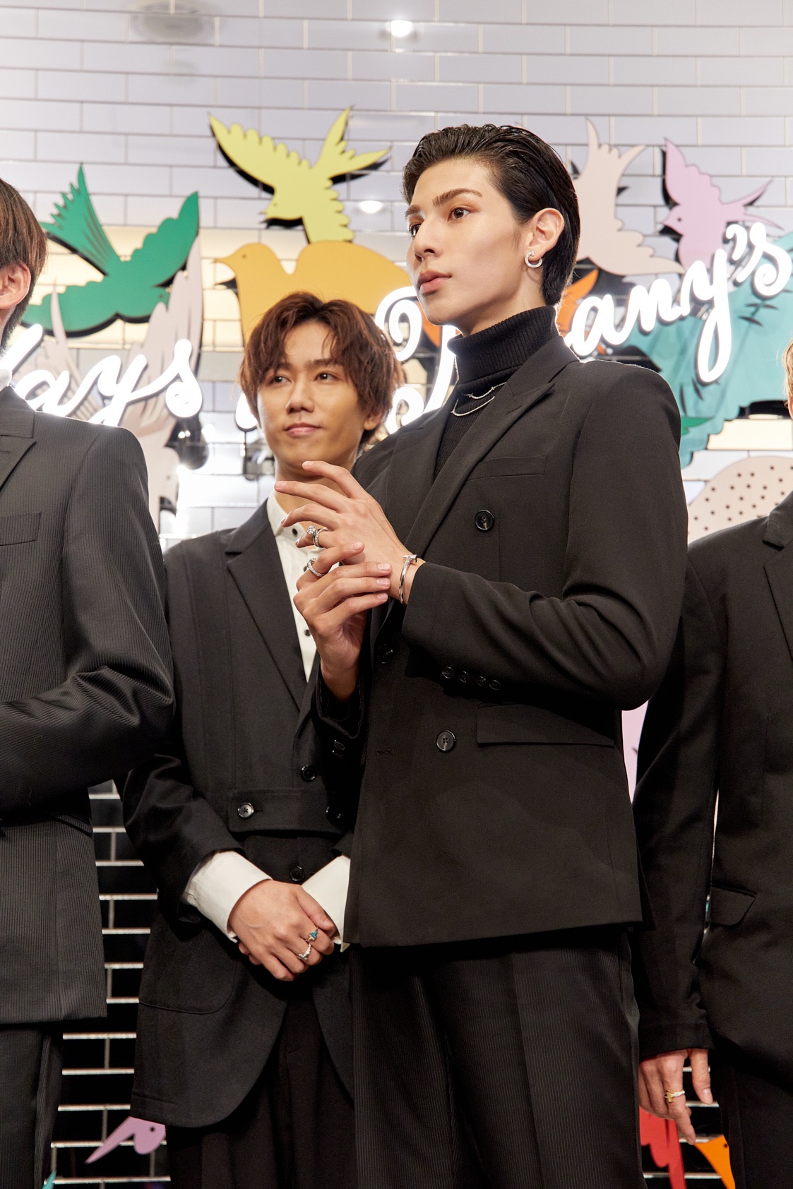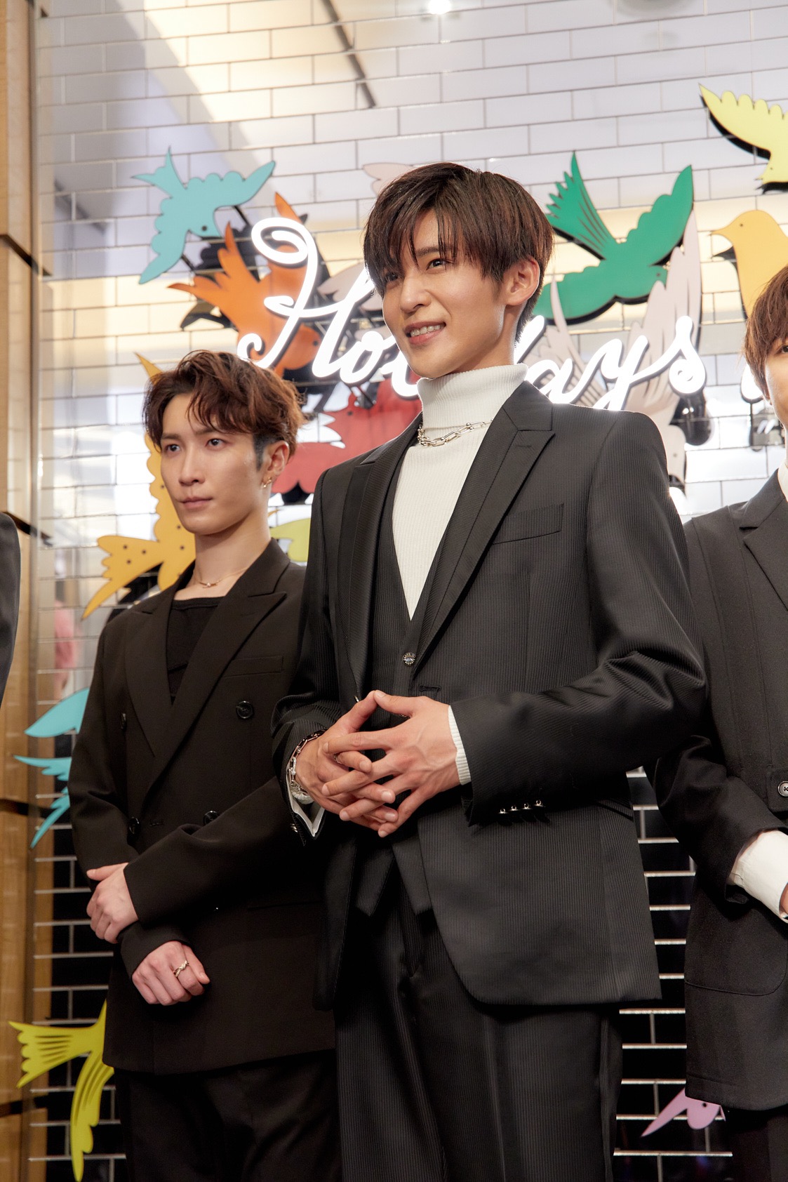 本日のコーディネートのポイントを聞かれると、ダイヤモンドが輝くリングを着用しているラウールは「今日は歴史のあるティファニーセッティングを、さらに5カラットを超えるダイヤモンドを着用させてもらっているんですけど、本当に指にもすごく重みを感じるので、背筋が伸びる思いです!」と話した後、しっかりリングが見えるようポーズを決めていると、向井は「それ越しの向井もお願いします」と会場の笑いを誘った。ペンダントを着用している宮舘は「Tスマイルという…」で静止すると向井がすかさず「シャッターチャンス自分で作らんといてもらえる?(笑)」とツッコミ。宮舘は「こちらのTスマイルでコーディネートさせていただきまして、Tスマイルはいろんなサイズがあってこれからの時期に、ギフトであげても良いんじゃないでしょうか」とコメントした。