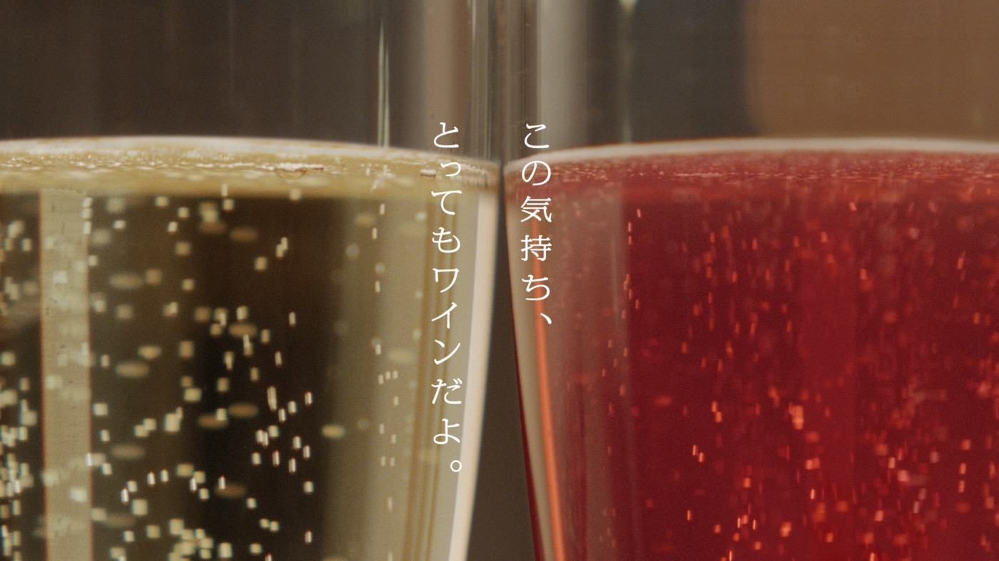 「この気持ち、とってもワインだよ」のメッセージのもと、2022年2月に第1弾TVCMを公開。稲垣吾郎が、まるでソムリエがボトルでワインを注ぐような動きで、“ノンアルでワインの休日”を缶からグラスに注ぐ姿や、「2022年モノです」「スキ」という仲睦まじい夫婦のやり取りを通して、“ノンアルでワインの休日”で生まれる豊かな時間を表現した。
