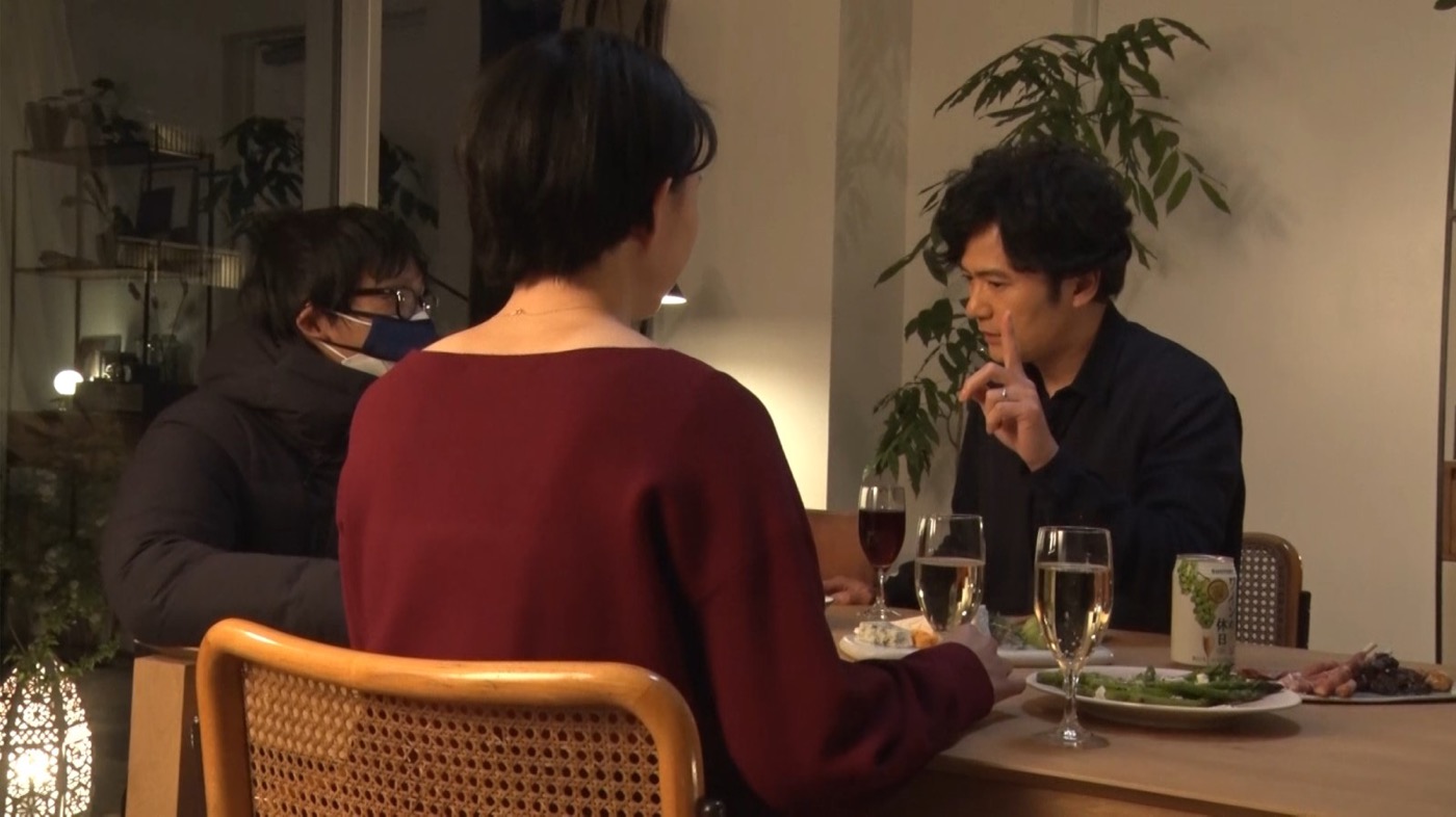 妻役と「ノンノン、ノンアル」とやり取りするシーンでは、「ノンノン、ノンアル」のセリフのイントネーションにもこだわり、本当の夫婦のような豊かな雰囲気を醸し出していた。