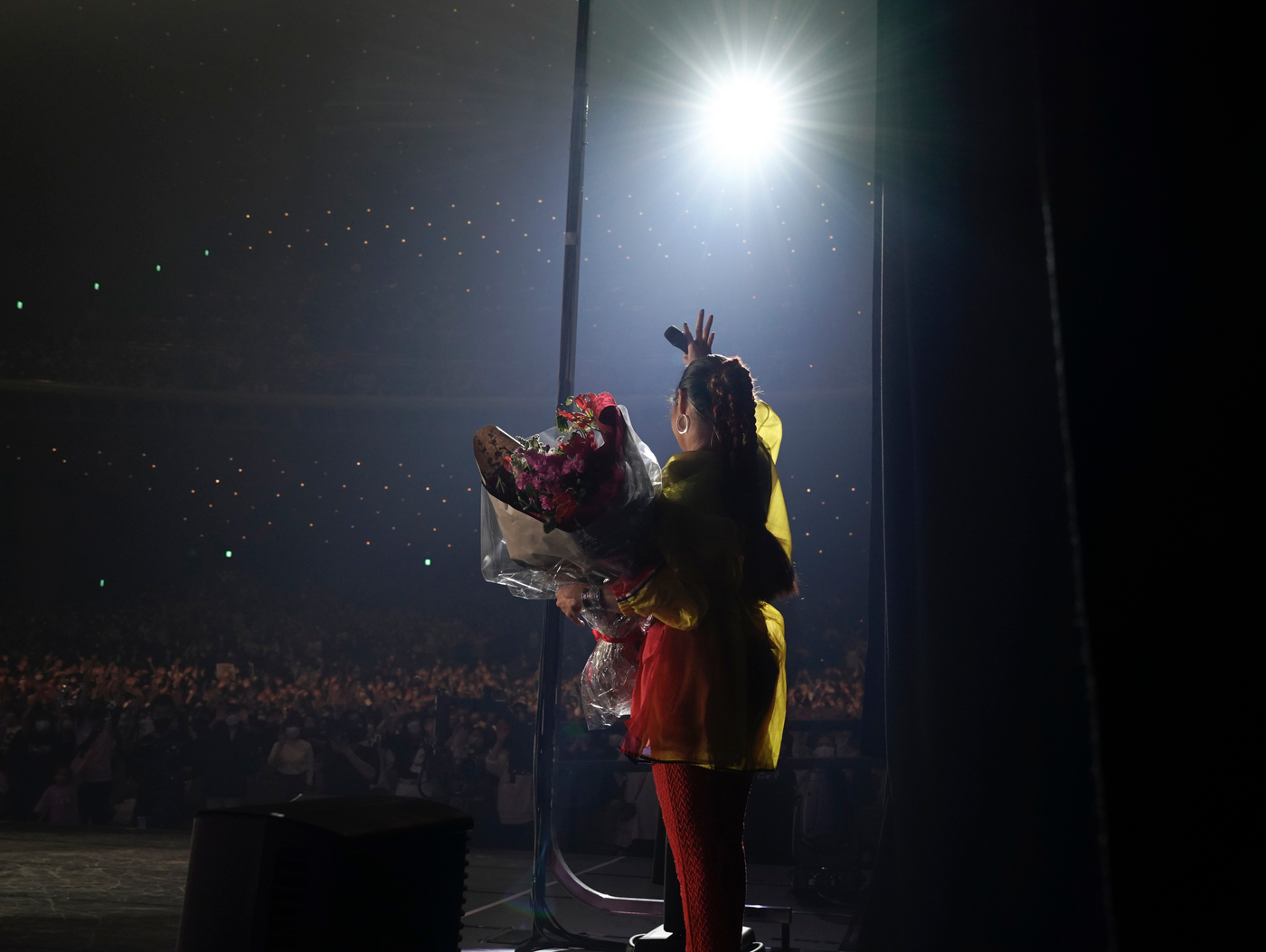 鳴り止まないハンドクラップに導かれ、AIが再びステージに登場。「ファイナルだからって気持ちが昂り過ぎちゃいけないと思って。やっとここで開放できます」と笑顔で語り掛けた。