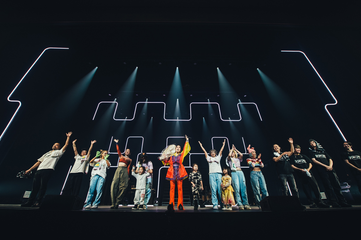 ここからライブは後半。アルバム『DREAM』収録曲「IN THE MIDDLE」を起点に強度の高い楽曲を続け、心地よい興奮へと結びつける。そして「First Time」では世界的ダンサーのRIEHATAがマイクを持って登場。“初めて”をテーマにしたリリック、キレのいいダンスを軸にしたレアなコラボレーションが実現した。