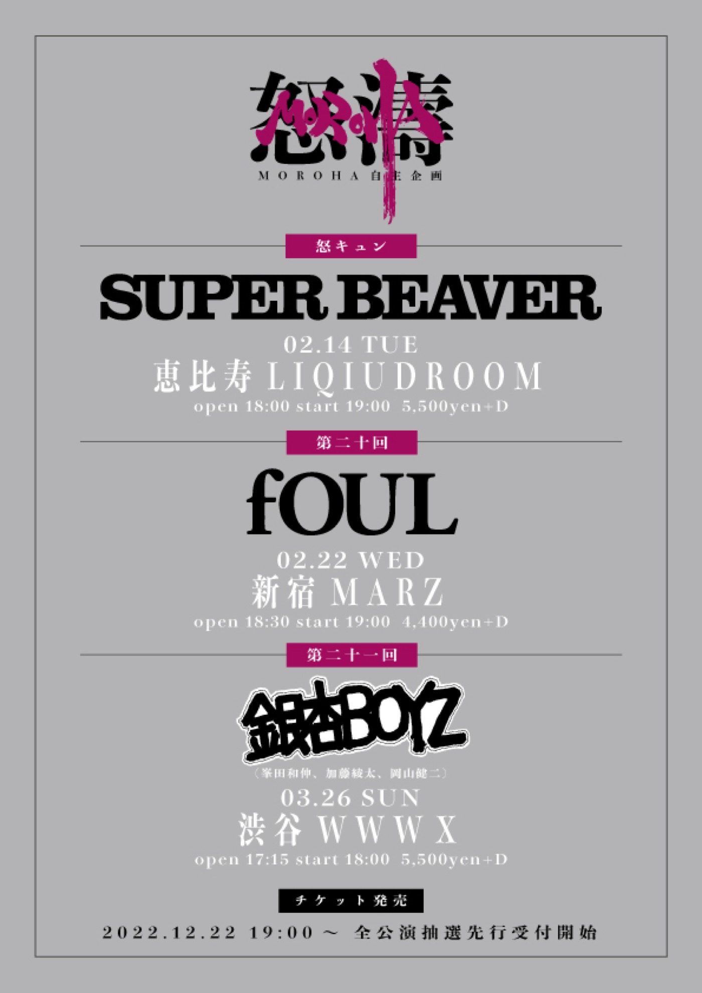 MOROHA、新自主企画ライブ開催決定。SUPER BEAVER、fOUL、銀杏BOYZが参加