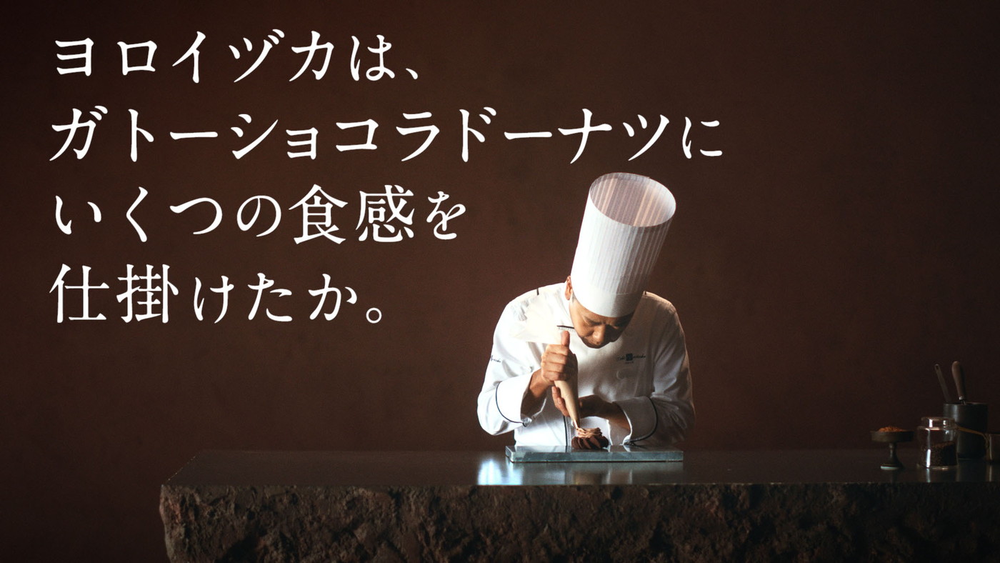今回の新TVCMでは、菅田が鎧塚シェフと初共演。新商品を手掛けた鎧塚シェフから差し出されたドーナツを目の前で食し、「これがヨロイヅカ式」とそのおいしさに感動の声をあげるストーリーを通じて、3種のショコラが絶妙に溶け合い、様々な食感の重なりが楽しめる「トリオレショコラ」をはじめとした『misdo meets Toshi Yoroizuka ヨロイヅカ式ガトーショコラドーナツ』の魅力を訴求していく。