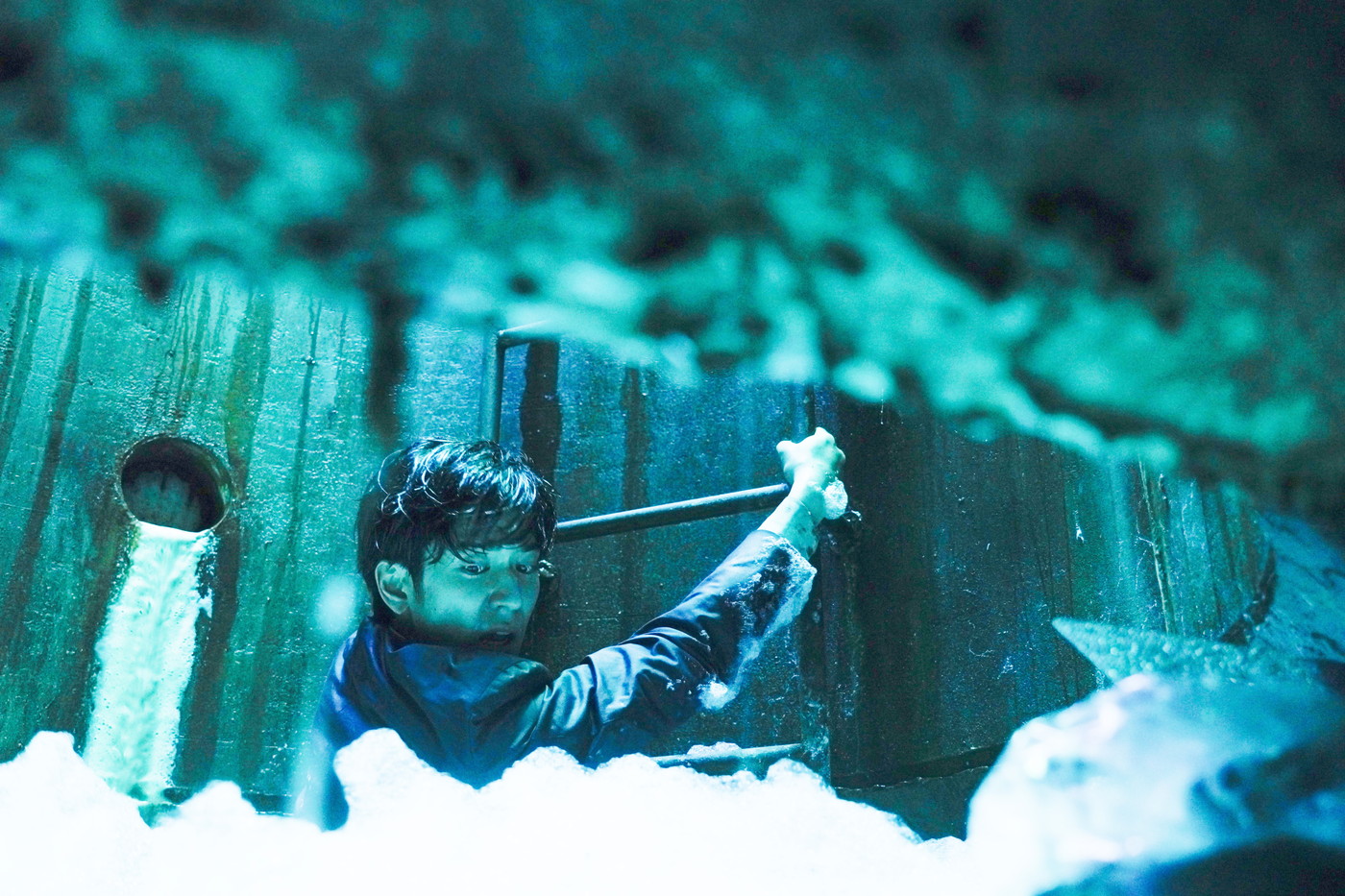 同時に公開されたメイキング写真では、泡に埋もれたマンホールのセットの中で、苦悶の表情を浮かべながら撮影に挑む中島の姿が。撮影当時は春の冷え込みがまだまだ続くなかだったが、中島は雨や泥、果てはこの大量の泡などの液体にまみれながら過酷な撮影を孤独に進めていったという。