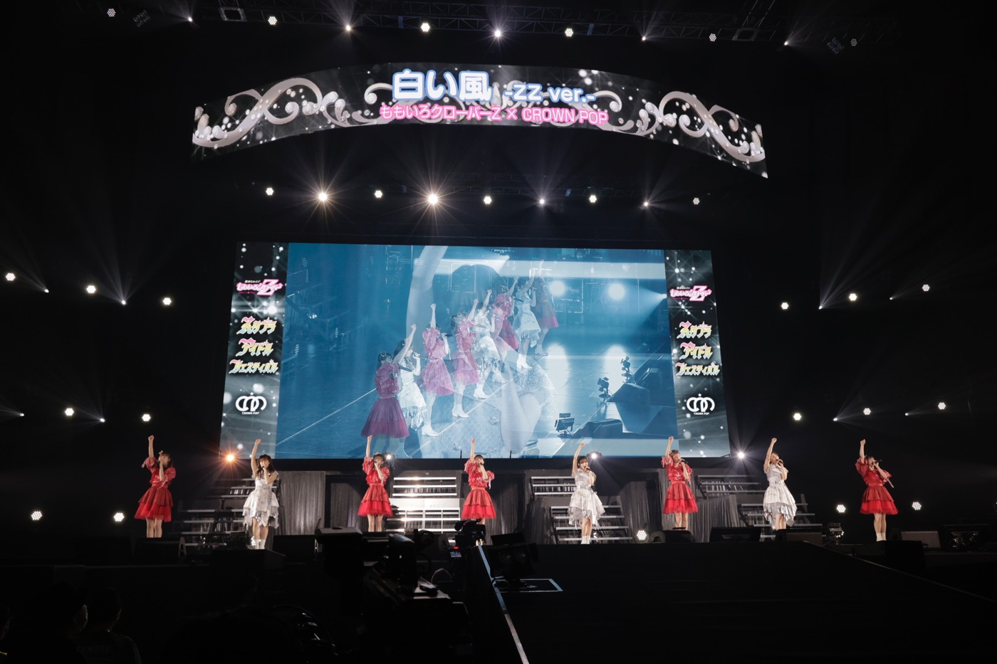 審査員に振付師のラッキィ池田を招いて送る「オリジナルダンスチャレンジ」では、事前に渡したオリジナル楽曲に合うように考えた20秒のオリジナルダンスをステージで披露することに。この審査のためだけに横浜アリーナへ来た池田の審査は、かなり“ガチ”。一人ひとりのダンスを見て、何かを一生懸命メモしていた池田が評価したのは、最後の決めポーズで強烈な変顔を繰り出したAMEFURASSHIの愛来。ダンス自体の評価はもちろんだが、「違う意味でキラキラしていた」と評価ポイントを語っていた。この日、後輩チームのサポートに徹底していたももクロ。フリースローやモノボケで大いに体を張ってくれたが、ライブでは満を持してアイドルらしさを発揮。落語をふんだんに取り入れた楽曲「ニッポン笑顔百景~ZZver.~」ではセンスを活かしたパフォーマンスでファンを魅了し、話題の『アイドルマスター シンデレラガールズ スターライトステージ』とのコラボ楽曲「Majoram Therapie」では息の合ったダンスを披露。「走れ!-ZZver.-」では花道を練り歩く彼女らに、ファンはコロナで欠席となってしまった高城れにのメンバーカラー・紫にサイリウムを染めて応援していた。