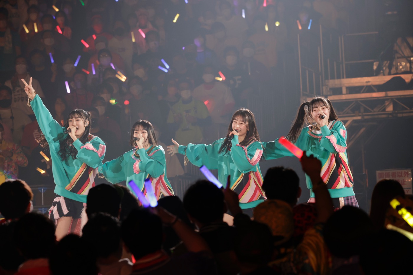 7番目の出番ということで、楽曲「トリプルセブン」でスタートしたTEAM SHACHIのライブ。曲中にファンクラブ入会を宣伝したり、彼女たちが拠点とする名古屋までの距離を伝えて次の曲「東海コンプライアンス」へ進んだり、プログレ歌謡ロックナンバー「江戸女」を歌ったりと、TEAM SHACHIらしいステージを繰り広げた。続くukkaは、体調不良で茜空と葵るりが欠席のため、この日は4人でパフォーマンス。2月から開始となる全国6都市を回るツアーは「6人で頑張ります!」としっかりファンに伝え、今4人でできる最高のパフォーマンスで「エビ・バディ・ワナ・ビー」「アフタヌーン・グラフィティ」「ukkaスタプラフェス2023メドレー」「ラブパレード」の4曲を披露した。
