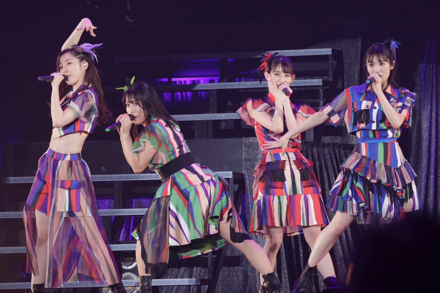2番手のばってん少女隊は、ロックナンバーでステージを終えた私立恵比寿中学の雰囲気をガラッと変えて、祭囃子のリズムが特徴の「OiSa」から始まり、軽快なステップが心地よい「さがしもの」「御祭sawagi」を歌って独自の世界観をアピールした。企画に戻り、続いては「モノボケチャレンジ」。テーブルにある小道具を使って、3人の審査員から得たポイントが一番高い者が優勝となる。玉井詩織がデモンストレーションで26点という高得点を出し、若干ハードルを上げてしまったが、後輩アイドルたちも奮闘。白衣と双眼鏡、スイカの被り物を使って独特すぎるボケを披露したいぎなり東北産の律月ひかると、箱とボトルを使って秀逸なボケを披露したTEAM SHACHIの秋本帆華が満点の30点を獲得。2人が所属するチームに1ポイントずつ加わった。