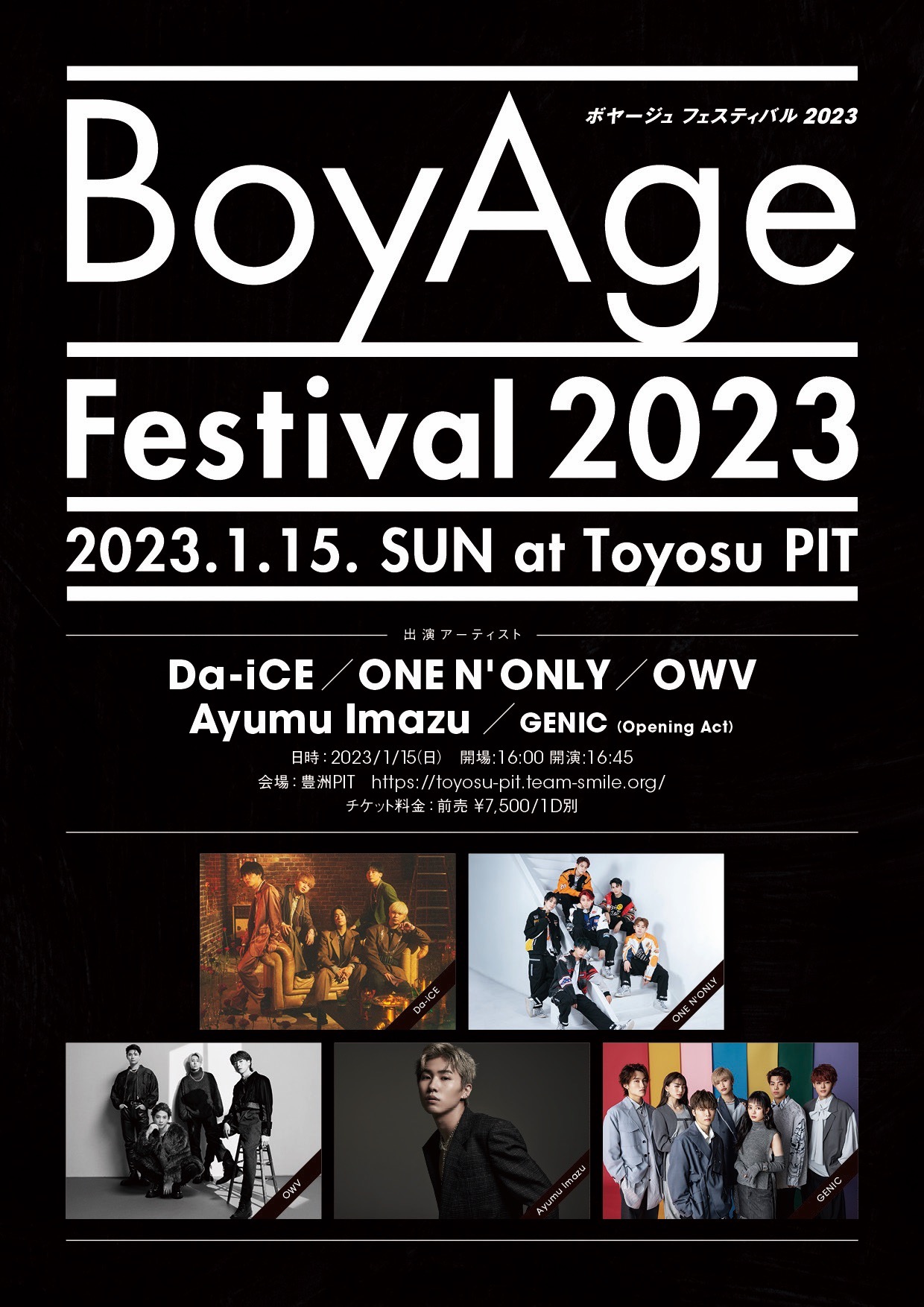 NEXT 2023.01.15 Da-iCE、ONE N’ ONLY、OWV、Ayumu Imazu、GENIC出演、音楽イベント『BoyAge Festival 2023』より白熱のライブ写真が到着 - 画像一覧(1/17) 前へ 記事に戻る 次へ