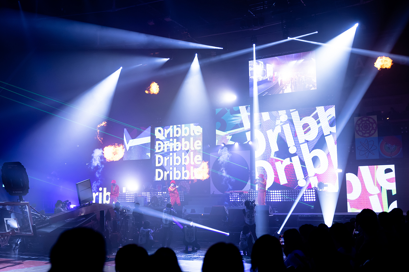 豪華なステージ上に全身真っ赤な衣装に身を包んだ3人が登場。「Insane(B.LEAGUE version)」の初生パフォーマンスで会場を大いに盛り上げた。