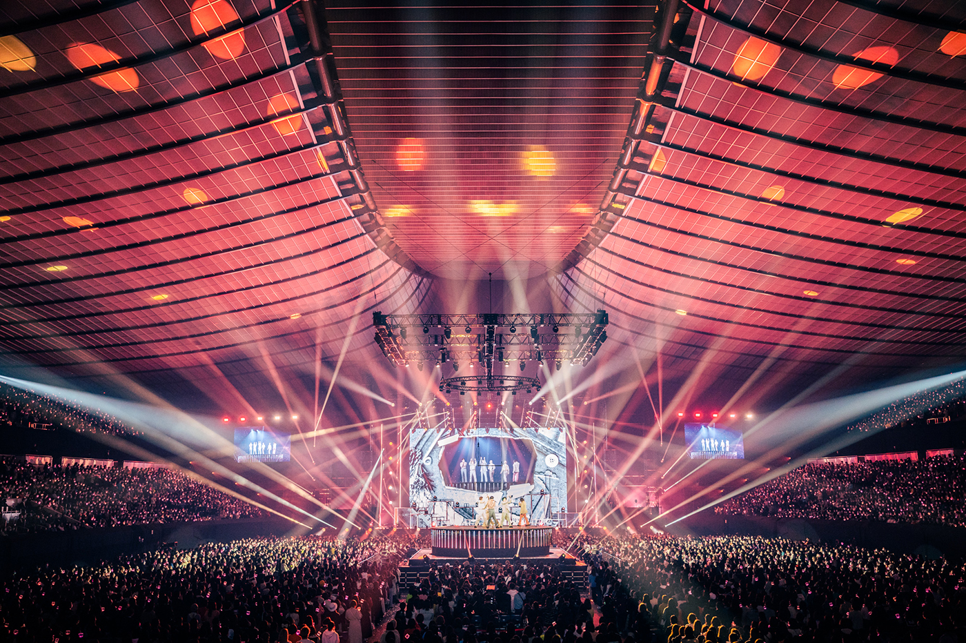 後半戦、「First Step」のサビでは、ステージ上で7人が満面の笑顔でジャンプをしながらタオルを回し、客席では大量のタオルとペンライトが回った。RYOKIが「最高の会場だぜ! 楽しんでいこうぜ!」と言い、「Kick Start」へ。7人が肩を組んだり、笑顔を見せ合いながらステージ上を移動し、カメラに楽しそうな表情を送る。7人が「クラップ、クラップ、クラップ、ヘイ、オー!」とリズムに乗せて歌い、オーディエンスもハンドクラップで応え、一体感を高めていく。