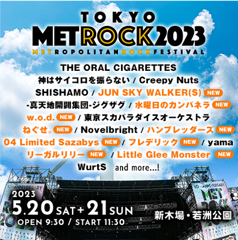 5月13・14日に大阪・METROCK 大阪特設会場で開催される『OSAKA METROPOLITAN ROCK FESTIVAL 2023』、5月20・21日に東京・新木場 若洲公園で開催される『TOKYO METROPOLITAN ROCK FESTIVAL 2023』の第2弾出演アーティストがが発表された。