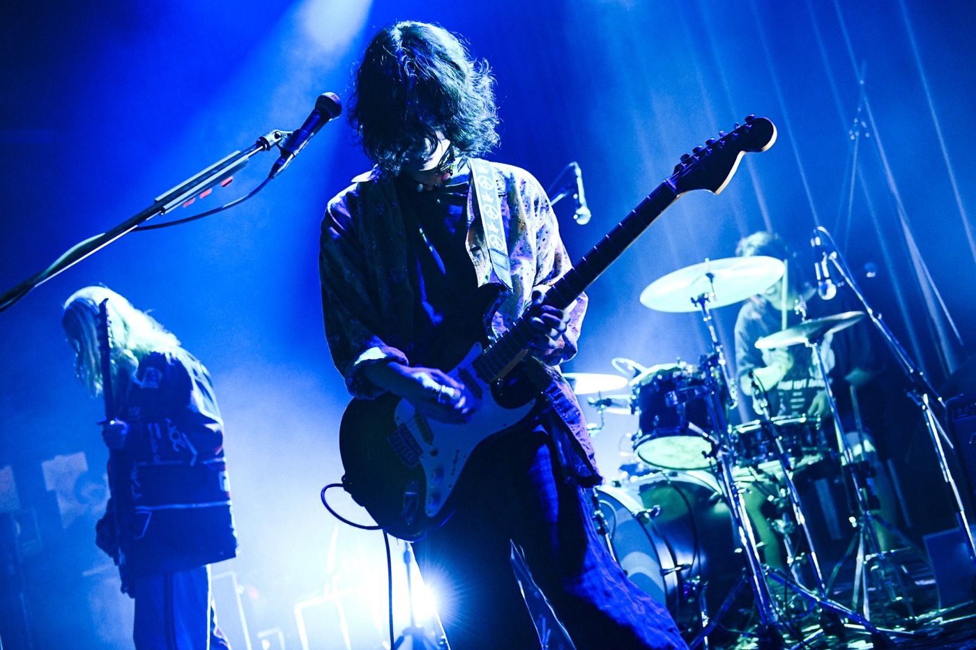 「刺激が欲しくてたまりません」というひと言から、ライブでは久々となる「SI・GE・KI」が演奏され、「CRAZY DAYS CRAZY FEELING」ではミラーボールがフロアを照らし出すなか、キャップにサングラス姿となった向井のラップが炸裂した。そしてラストは楽曲タイトルのとおり、壮絶なリフの応酬となった「RIFF MAN」でフロアを圧倒しライブパートを締めくくった。