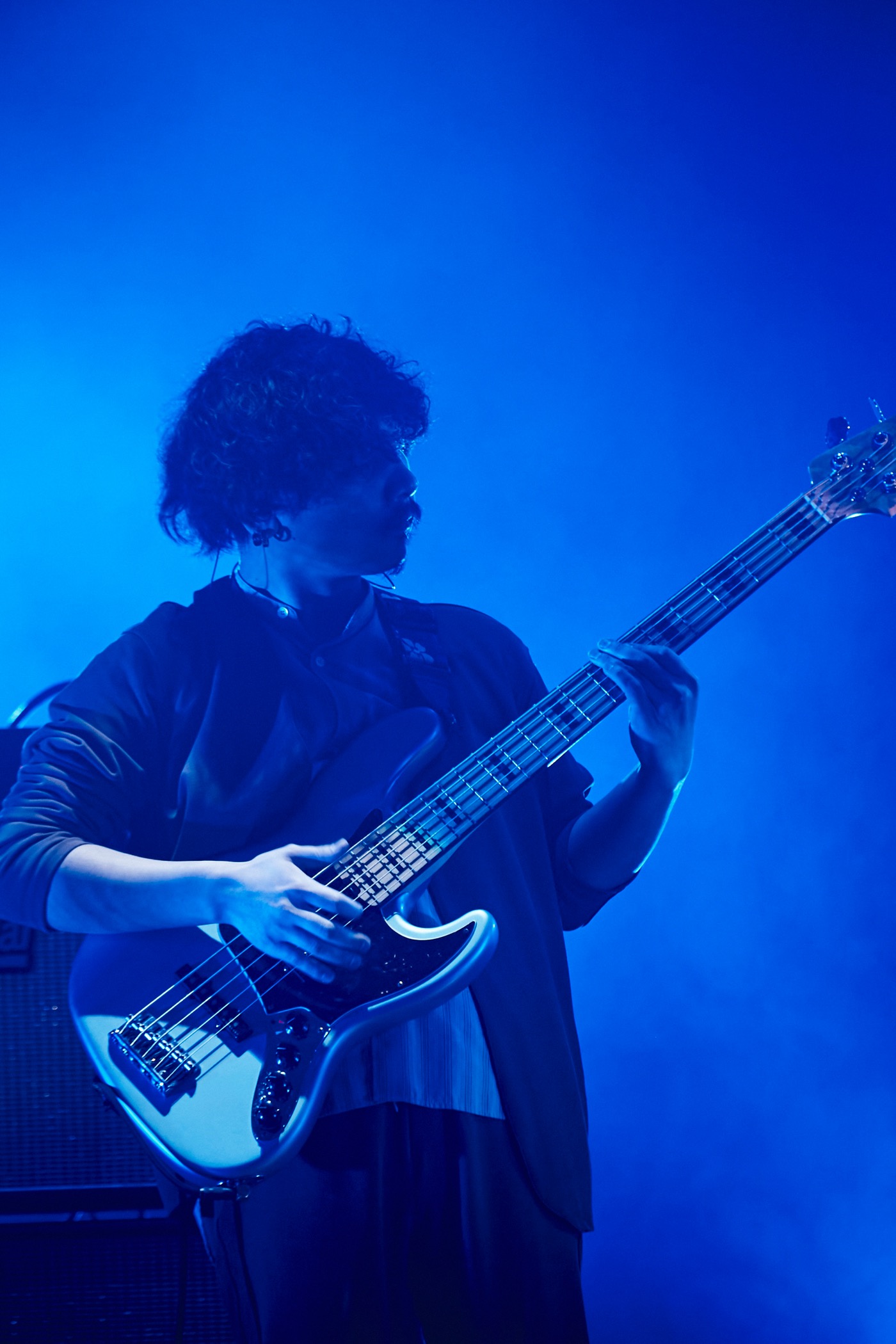 最初にこの曲を聴いたときに清涼感とポップな感じがお気に入りだったのだけど、ライブで聴くそれが、ここまで“君をさらって行くよ!”感があるとは思いもよらなかった。往年のシティーポップミュージックの表情をしながらも力強く疾走していく声と音楽は、グイグイと彼らのコアスポットに引き込む。よく“沼落ち”というが、Omoinotakeの沼の深さと幸福感は簡単には抜け出せないんだ、と改めて知ることになった。さらに追い打ちを掛けるように名曲「彼方」へ続く。巧妙に構成された楽曲を、透明感と安定感と繊細でありながらも力強いレオの歌声は、彼方まで届いているかのようだ。