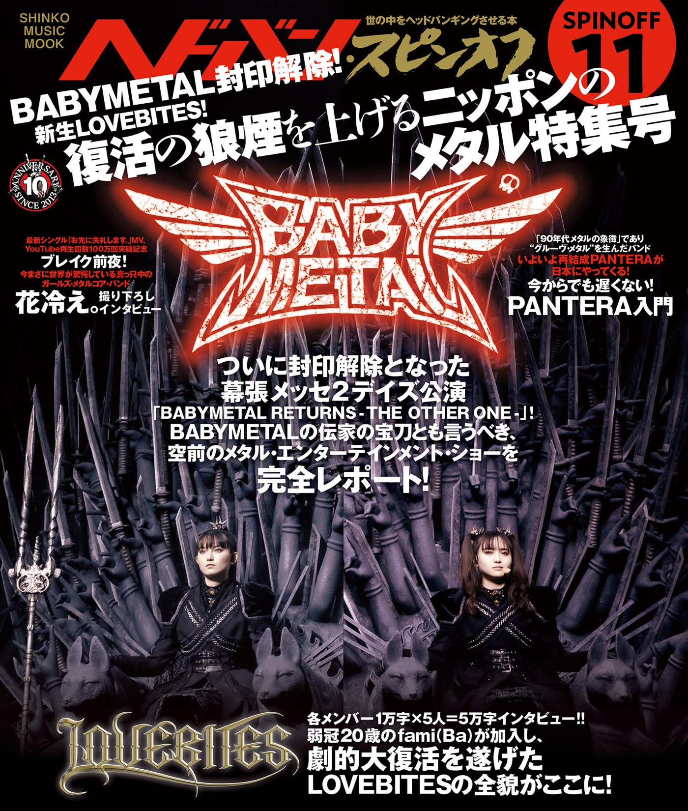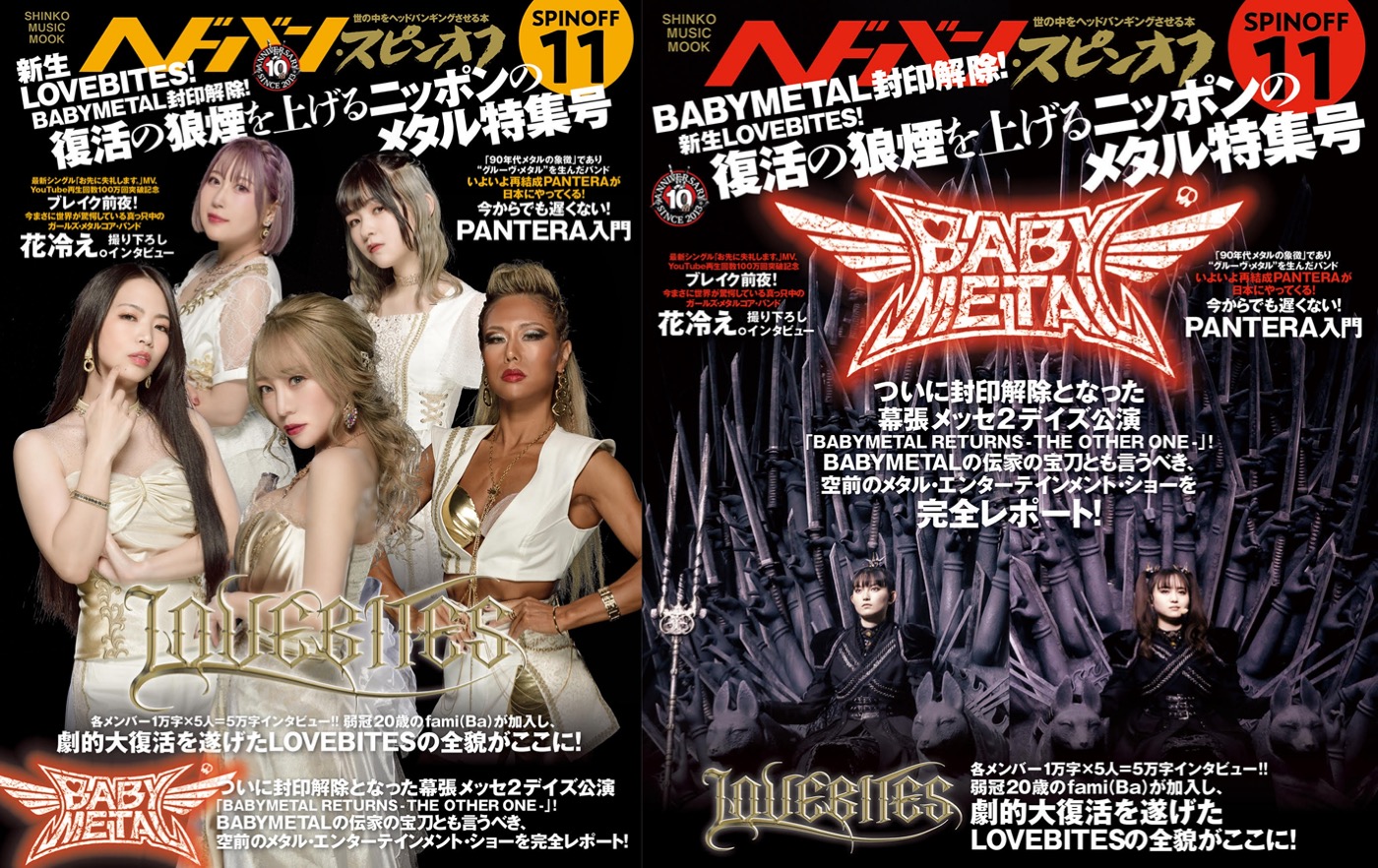 約2年半ぶりとなる『ヘドバン』の別冊シリーズのメインは、劇的復活を遂げた新生LOVEBITESと、ついに封印解除となったBABYMETAL。それぞれカラー40ページ超での大特集となる。