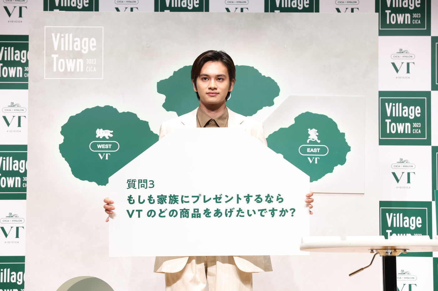 その次に引いた「South Village」のカードに書かれた「家族にプレゼントをするならVTのどの商品をあげたい?」という質問には「新商品が3月に出るということなので、それが気になりますね。自分より上の世代の人たちも使いやすいものになっているようなので、自分の親にもあげたいですね」とアンバサダーらしく新商品の紹介もしつつ新商品への期待も語った。