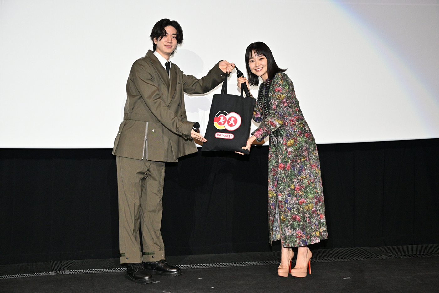 また、日本で見守った奈緒には、熊切監督と中島から映画祭の公式グッズであるポーチや湯たんぽ、ノートがベルリンのお土産としてプレゼントされた。