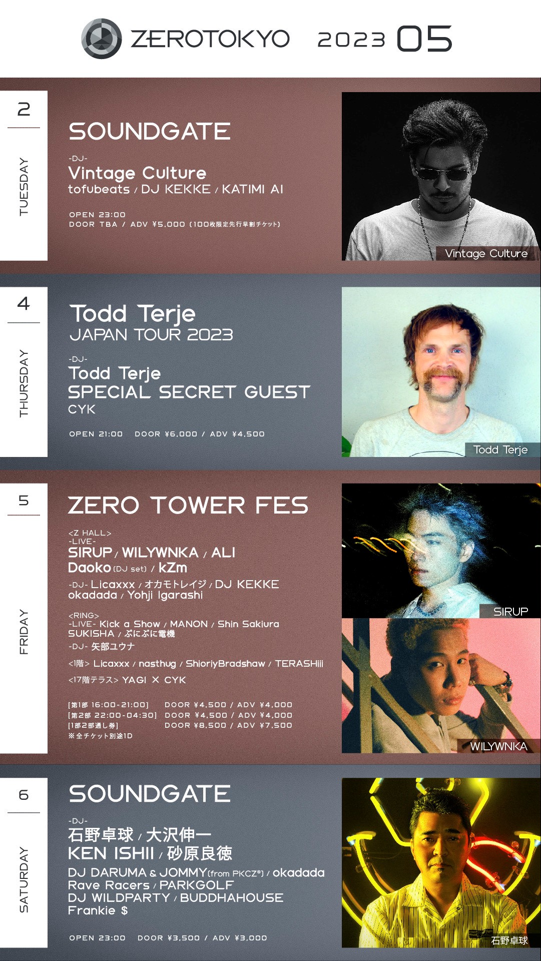 本施設の地下2階〜地下4階までの3フロアと1階KABUKICHO TOWER STAGE、17階テラスと東急歌舞伎町タワーの様々な場所を回遊して楽しめるタワー型フェス。デイタイムから朝まで堪能できるこのフェスのヘッドライナーを飾るのはSIRUP、WILYWNKA、ALI、Daoko、kZmの5アーティスト。Licaxxxやokadadaを筆頭に日本各地で活躍するDJ陣も集結。17階テラスにはOKAMOTO‘Sのドラマー、オカモトレイジがキュレーションするYAGIEXHIBITIONとFUJI ROCKにも出演を果たしたハウスDJコレクティヴCYKがコラボレーション。様々なエリアを回遊して、自分なりの楽しみ方を見つけよう。