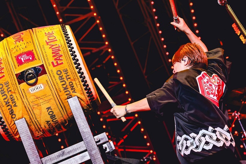 次もリアレンジで「Moon Light Party」。デビュー前から演奏されているファンにはお馴染みのナンバーも、スカのリズムのニューアレンジで新鮮に聴かせ、 間奏では、「KOBUKURO AND THE FAMILY TONE」と、こちらもコールアンドレスポンスで観客との久しぶりの声を出しての掛け合いを楽しんだ。続いて、2025年に開催される大阪・関西万博オフィシャルテーマソング「この地球(ほし)の続きを」では、2022年の全国ツアーでも披露していた和太鼓がより大きいサイズで登場し、小渕が力いっぱい叩き、サビの「こんにちは」ではMVでの振付を観客と共に盛り上がり、本編を終えた。
