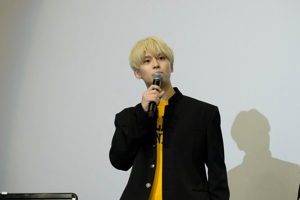 満員の観客の拍手によって迎えられると、山下永玖が「本日はお集りいただきありがとうございます。公開できてうれしいし、一人ひとりが熱意を込めて作り上げることができたのでうれしいです」と挨拶。