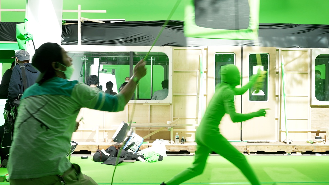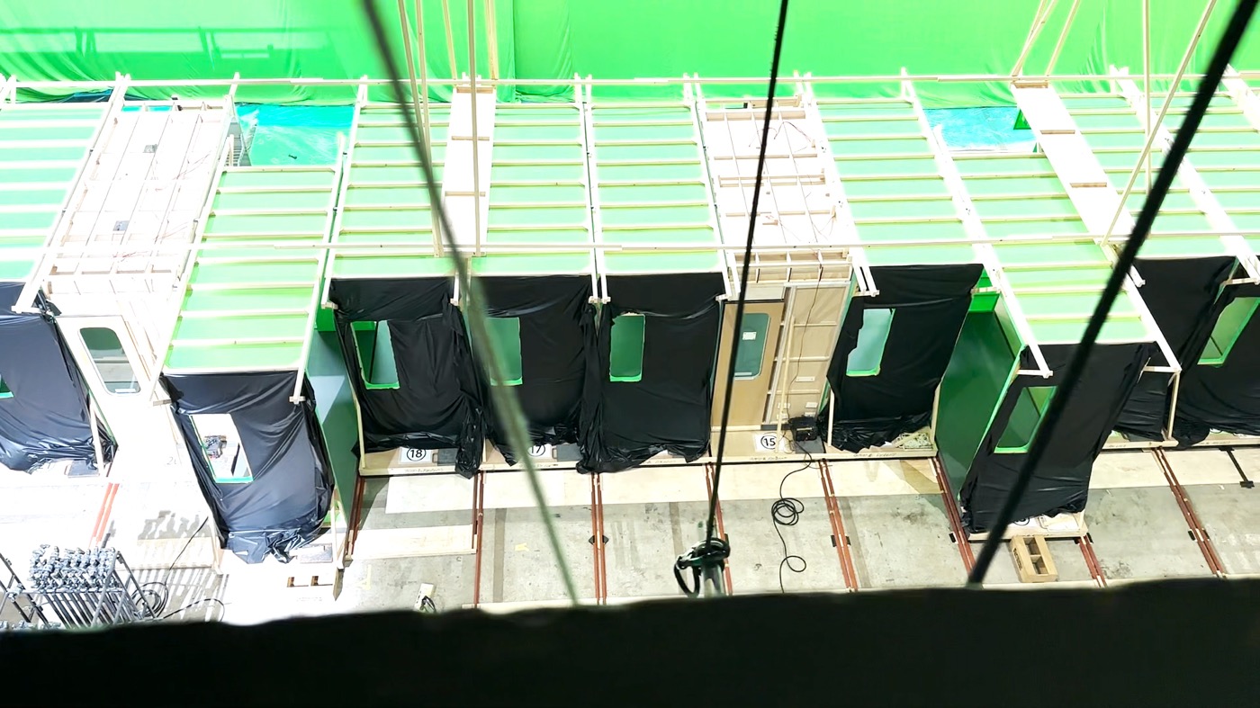 本ムービーのもうひとつの見どころが“ループ車両”。父娘が立つ車両の一部分が、まるで金太郎飴のようにループしながら、左右に蛇行していき、父娘の関係性の変化を演出しています。撮影は、輪切りにされた美術セットを25台用意し、カウントに合わせてひとつひとつ人力で動かしながら撮影された。