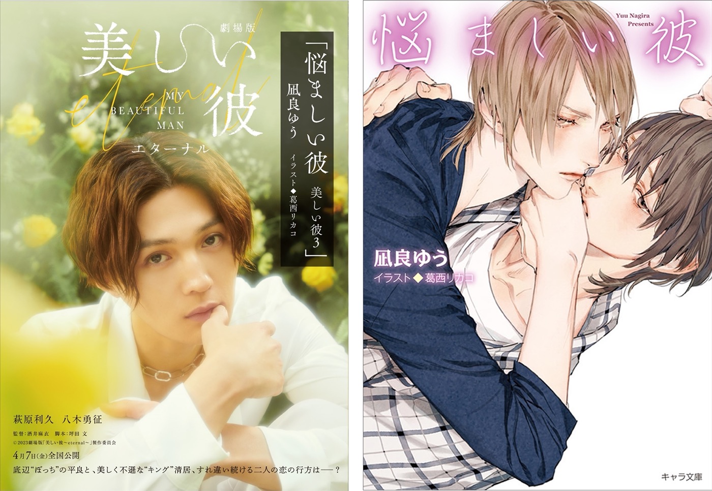 このたび、映画の公開を記念して、凪良ゆうによる原作⼩説『美しい彼』シリーズ(キャラ⽂庫)の既刊4冊が、映画版ビジュアルを使⽤した特製全⾯帯にて、3⽉15⽇より順次、全国書店で展開されることが決定。全⾯帯のデザインが解禁された。