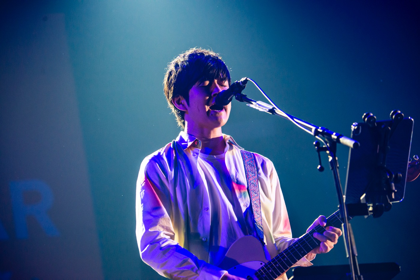 「この間、アルバム『イノセント』が出まして。8年くらい前にSPEEDSTARに移ってきて、まだ新入生的な扱いです(笑)。ちゃんと一歩ずつ階段を上がっていこうかなと。次に歌うのは出たばかりの曲です」と紹介しつつ歌い始めた「さよならサンセット」。『イノセント』の中でも美メロが光っていた曲だが、ライブで聴いても胸に深く染みた。続いてNHK総合『プロフェッショナル 仕事の流儀』のテーマソングとしてお馴染みの「Progress」も披露。そしてラストに届けられたのは「コノユビトマレ」。グルーヴィーなバンドサウンドに包まれながらギターを弾き、歌声を響かせるスガも心底楽しそう。掲げた腕を振りながら盛り上がる観客たちと一緒に幸福な空間を作り上げていた。