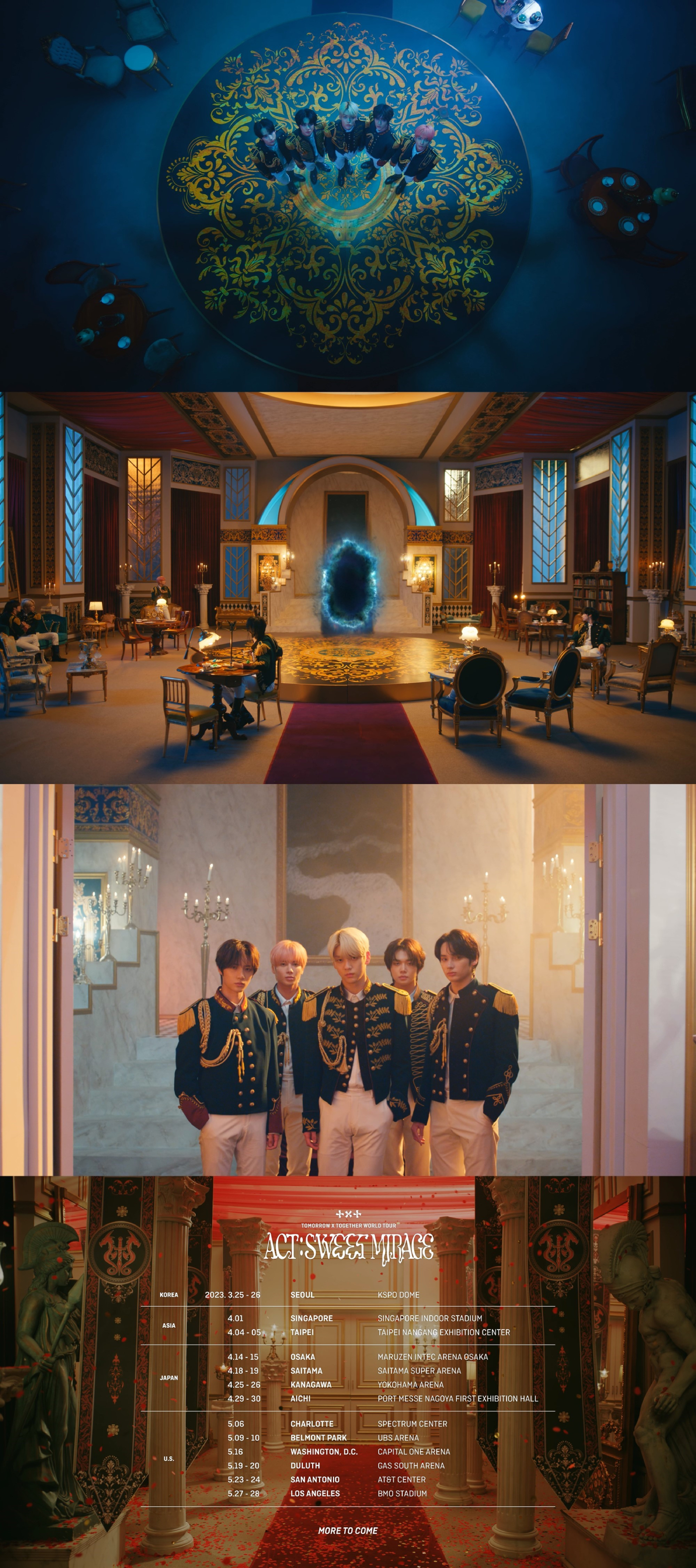 TOMORROW X TOGETHERは今回の『ACT: SWEET MIRAGE』でアルバムの情景を描写するストーリーテラーとして強みを見せる予定だ。セットリストはもちろん、続くステージとつながるVCR、ステージ舞台演出など、公演を成す多様な要素を有機的に組み合わせて、新しく恍惚とした没入感を体感できると期待される。