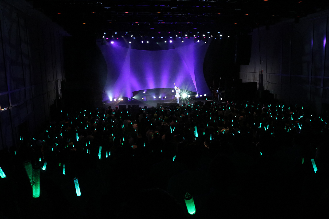ペールグリーンを基調とした、ふわふわのアイドルらしいかわいいい衣装で登場した小久保は、「朝顔」からライブをスタート。ポップなメロディと切ない世界を伸びやかに柔らかい声で届けると、「皆さん! 一緒に踊って楽しんでいきましょう~!』と呼びかけ、「イヤフォン・ライオット」「ヘロー」を披露し会場を魅了した。
