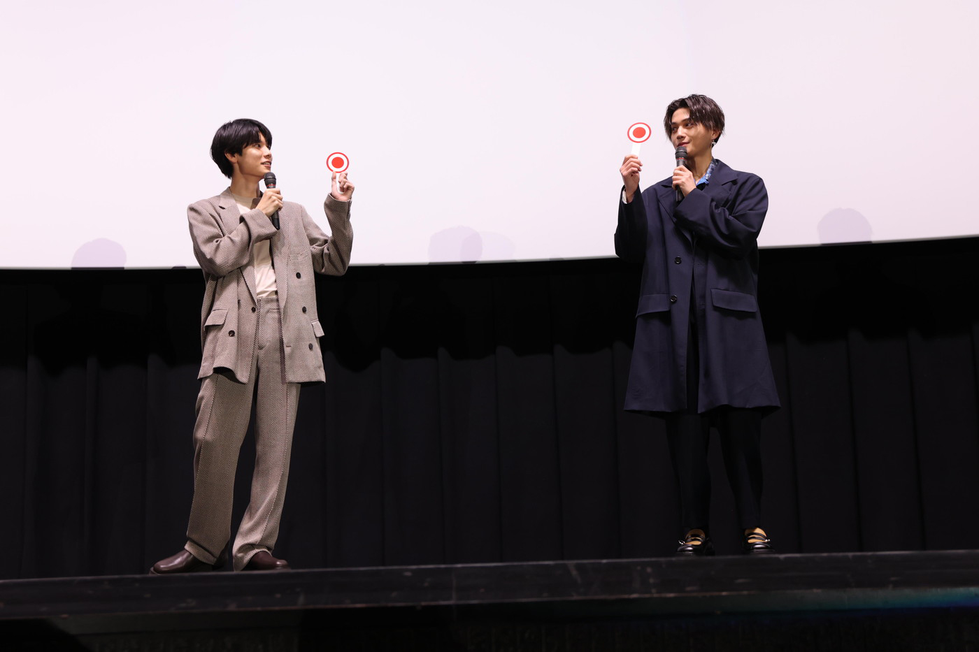 萩原利久は「本日は大阪の皆様とお会いできてすごくうれしいです。ありがとうございます。よろしくお願いいたします!」と述べ、続いて八木勇征が「映画、どうでしたか?」と観客に問いかけると割れんばかりの拍手が起こり、「ありがとうございます! 今日はぜひ一緒の時間を楽しんで過ごしましょう。よろしくお願いします!」と喜んだ。