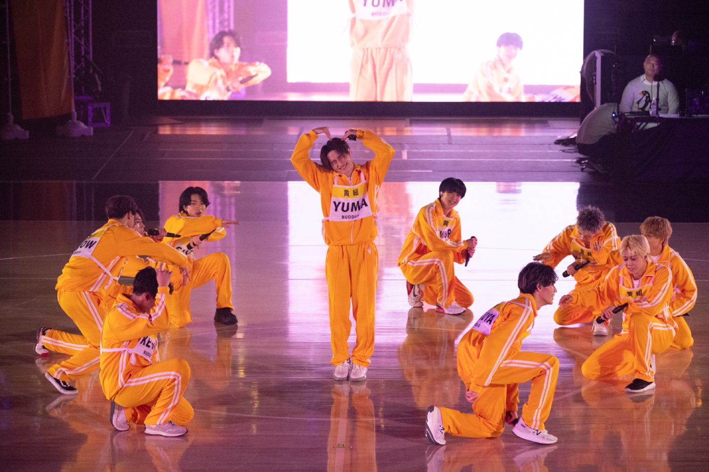 男女混合10人組グループであるONE LOVE ONE HEARTは、モニタールームで応援していた女子チームも登場し、アグレッシヴなギターロック「Glory Dayz」で会場の熱量を高めると、BUDDiiSはKEVINが作詞作曲し、FUMINORIとFUMIYAが振り付けを手がけた「OZ」でファンに愛を送り、原因は自分にある。は、セルフタイトルを冠したデビュー曲のアンサーソング「原因は君にもある。」でクラップを煽って盛り上げた。