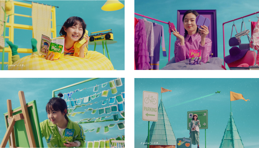 CMでは、レモン、グレープ、マスカットの定番3品との新フレーバー、しゅんわり、青りんごの4つのフレーバーに合わせた4つの「トキメキ」を表現。yamaの楽曲に乗せ、伊藤万理華が“ピュレグミ”を食べることをきっかけに、大好きなものを友達にシェアすることや新発見に出会う旅、絵を描いて自分の感性を表現すること、メイクやファッションで変化を楽しむことなど、日常のなかにある様々なトキメキに気づくことで、自分に自信を持ち、気持ちが彩られる様子を表現。今回も楽曲に合わせ、伊藤が軽やかなダンスを披露している。