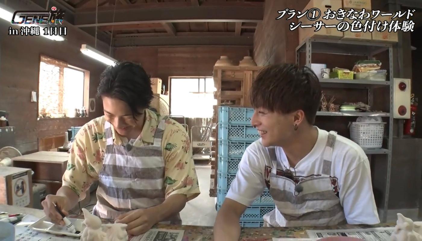 それぞれの性格が出たシーサーとなったが、関口メンディーだけは「メンさんやばいことやってる」(佐野玲於)「なんかその配色…」(数原)とメンバーからツッコミが殺到。ちなみにGENEオリジナルシーサーはおきなわワールド伝統工芸エリアで展示中だ。