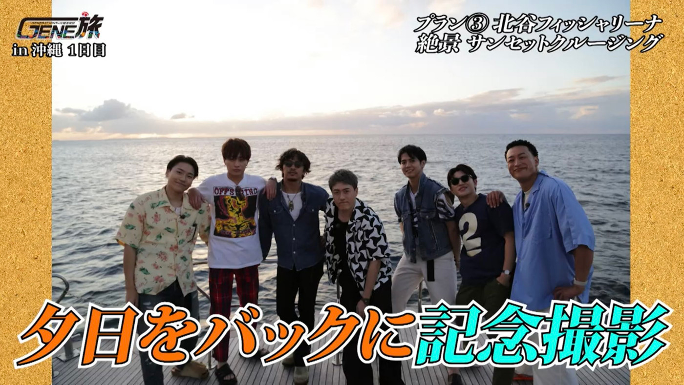 この日がGENE旅の最終日ということでメンバーは「沖縄何回も来たことあるけどこんな楽しかったの初めて!」(数原)、「沖縄の海にまた戻ってきたいなと思わ」(片寄)、「大人になっても修学旅行みたい」(佐野)とコメント。最後に「HIS」にかけてコメントを求められたメンディーは「H 本当に I 行きたい S 素敵な旅~」と締めくくり、拍手喝采の大盛り上がりとなった。