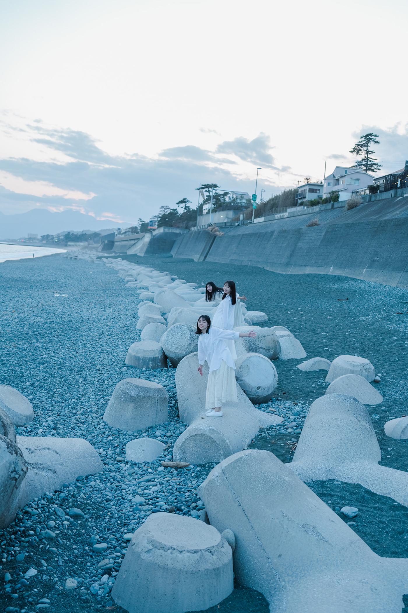 また、巻頭グラビアでは、等身大のポップな制服姿でシャボン玉を追いかける様子や、絵の具だらけになりながら1枚の大きなキャンバスに3人で絵を描く姿、夕暮れ時の砂浜でエモーショナルに佇む姿など、青春を駆け抜ける彼女たちの今しか見ることができない一瞬を切り取っている。
