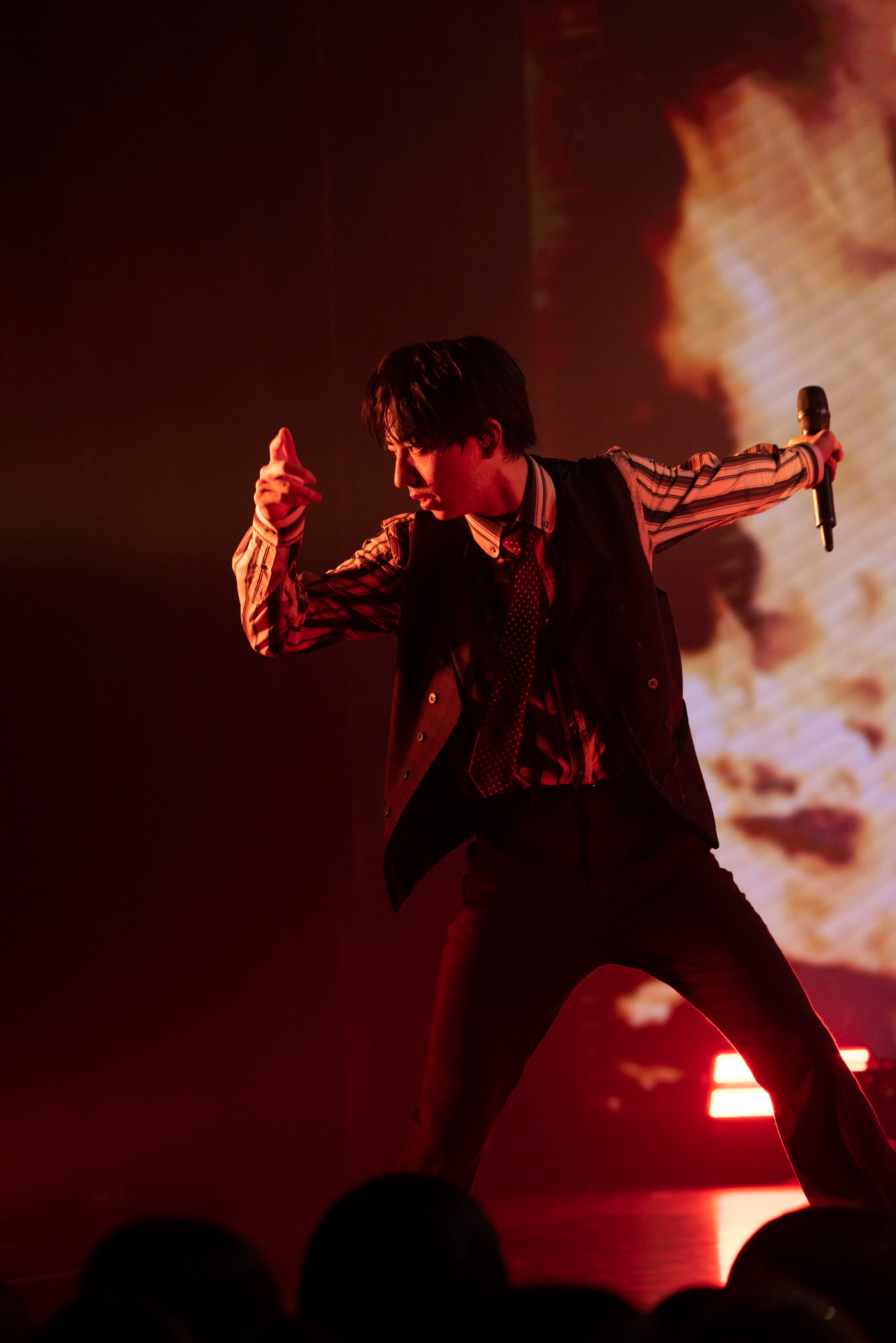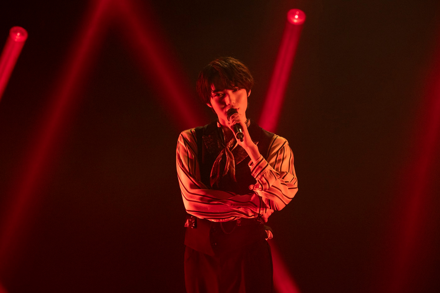 さらに、開いたパネルの向こうから互いにしなだれかかり、顔を寄せ合う大倉と長野凌大が登場して、観測者たちを沸かせる。禁じられた恋を歌う「半分相逢傘」をふたりでムードいっぱいに届け、“これでどっちも悪いね”の決め台詞を大倉が呟けば、曲中に流れる女性の台詞も今日だけのスペシャルバージョンに。