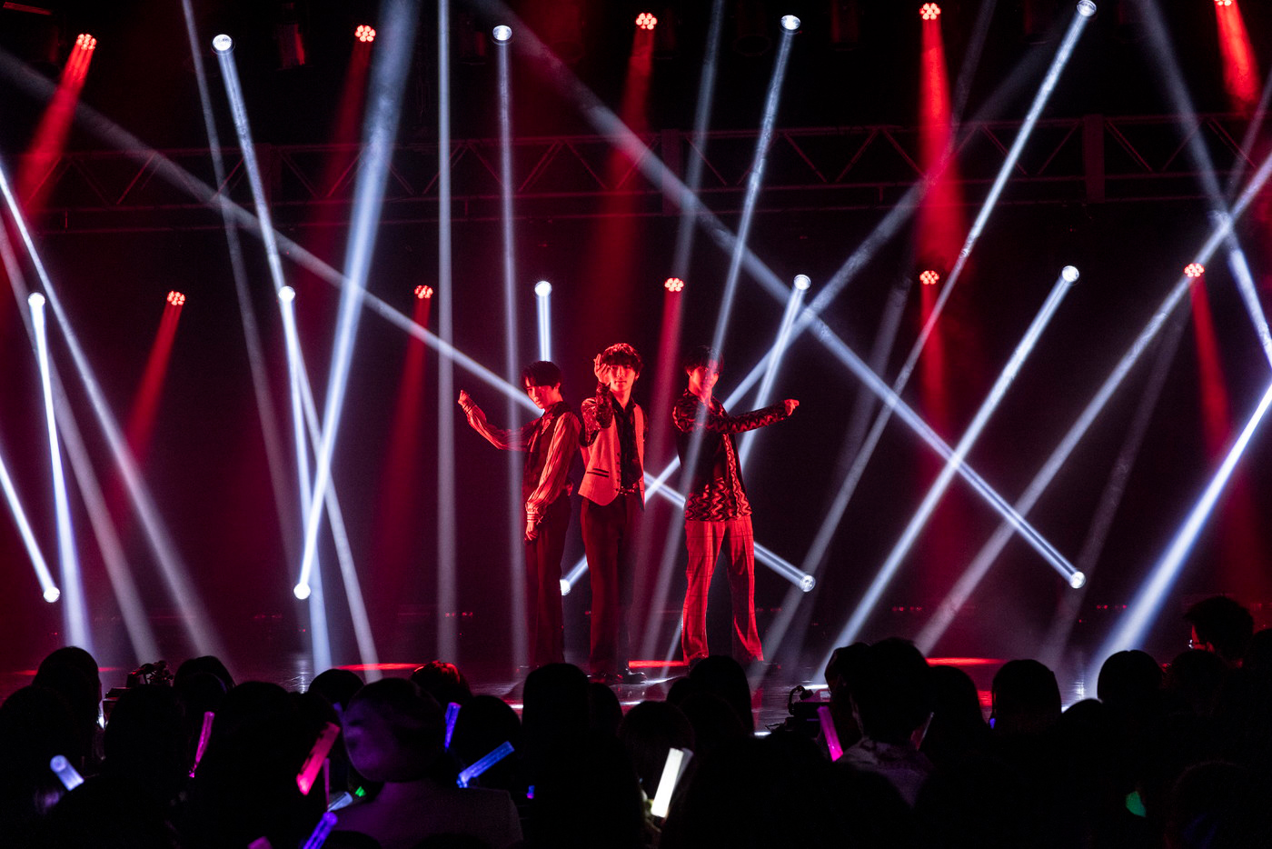 そして、この日最後の曲として、1stシングルに収録されていた「ラベンダー」を小泉がカットインで歌いだすと、懐かしの選曲に歓声が。失った恋をエモーショナルに綴る小泉、武藤、長野の歌唱に対し、サウンドは躍動的なダンスチューンというレアな取り合わせも、彼らが標榜する“新時代のエンターテイメント”に相応しいものだろう。