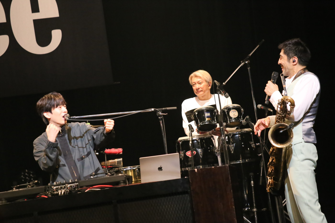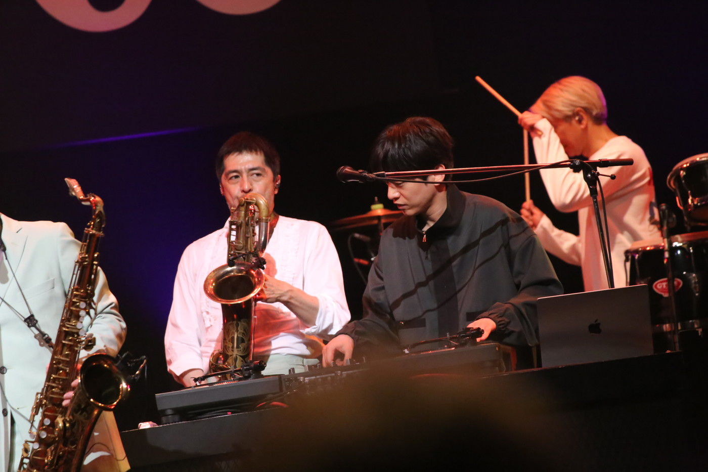 茂木欣一(Dr)は「音楽って最高だな! 音楽は裏切らないね。寂しいときは寄り添ってくれるし、楽しいときはどこまでも楽しいって今日証明されたよね!」といえば、北原雅彦(Trombone)は「ハイ、どーもー! いやいや、Creepy Nutsのふたりより年が倍でした! 長生きするといいことありますよ! 皆さんお元気で!」とスカパラファンにとってはいつもどおりだが、Creepy Nutsファンを困惑させるような北原流のコミカルな挨拶が披露される。
