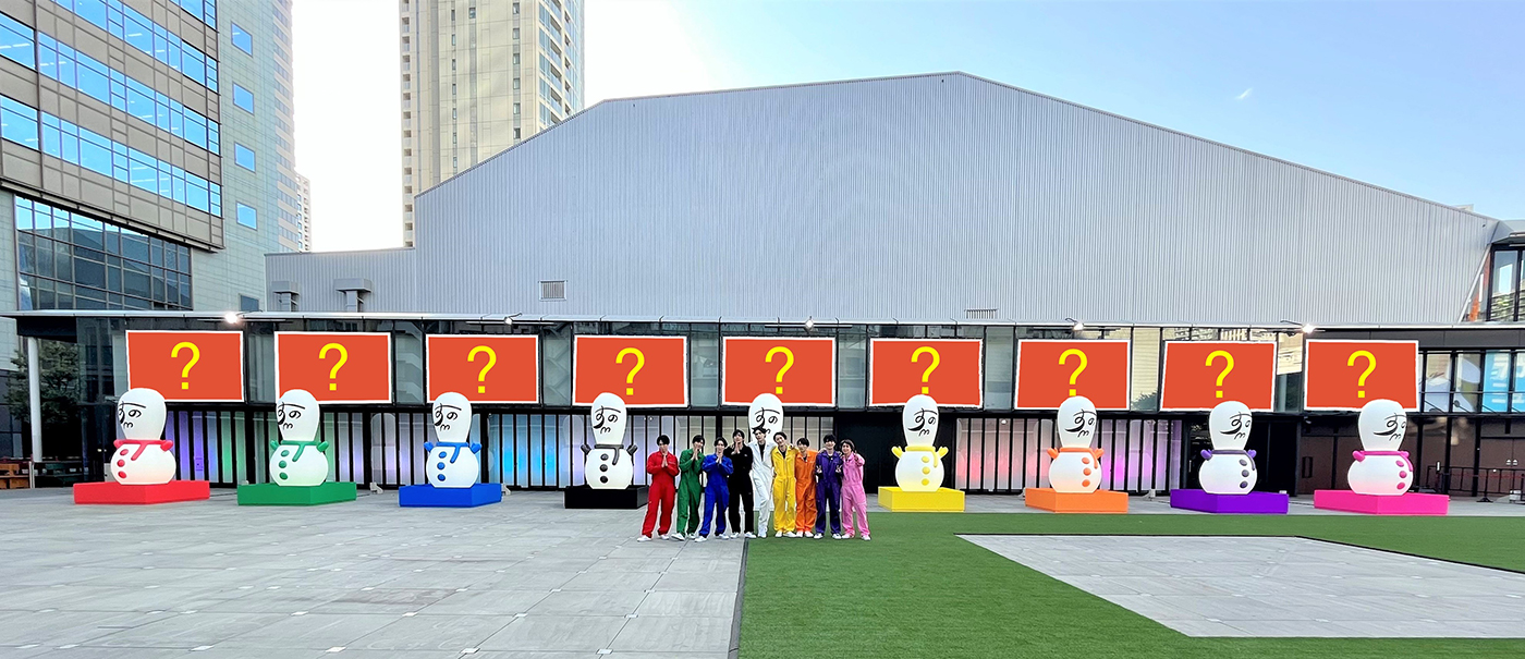 さらに、ポスターの下にはSnow Manのメンバーカラー9色で彩られた季節外れの“雪だるま”=“すのすのだるま”も出現。先日の『ラヴィット!』でメンバーの佐久間大介から緊急告知され話題となったが、約2.5メートルの巨大雪だるまバルーン9体が、春の赤坂サカスをSnow Manカラーに染める。