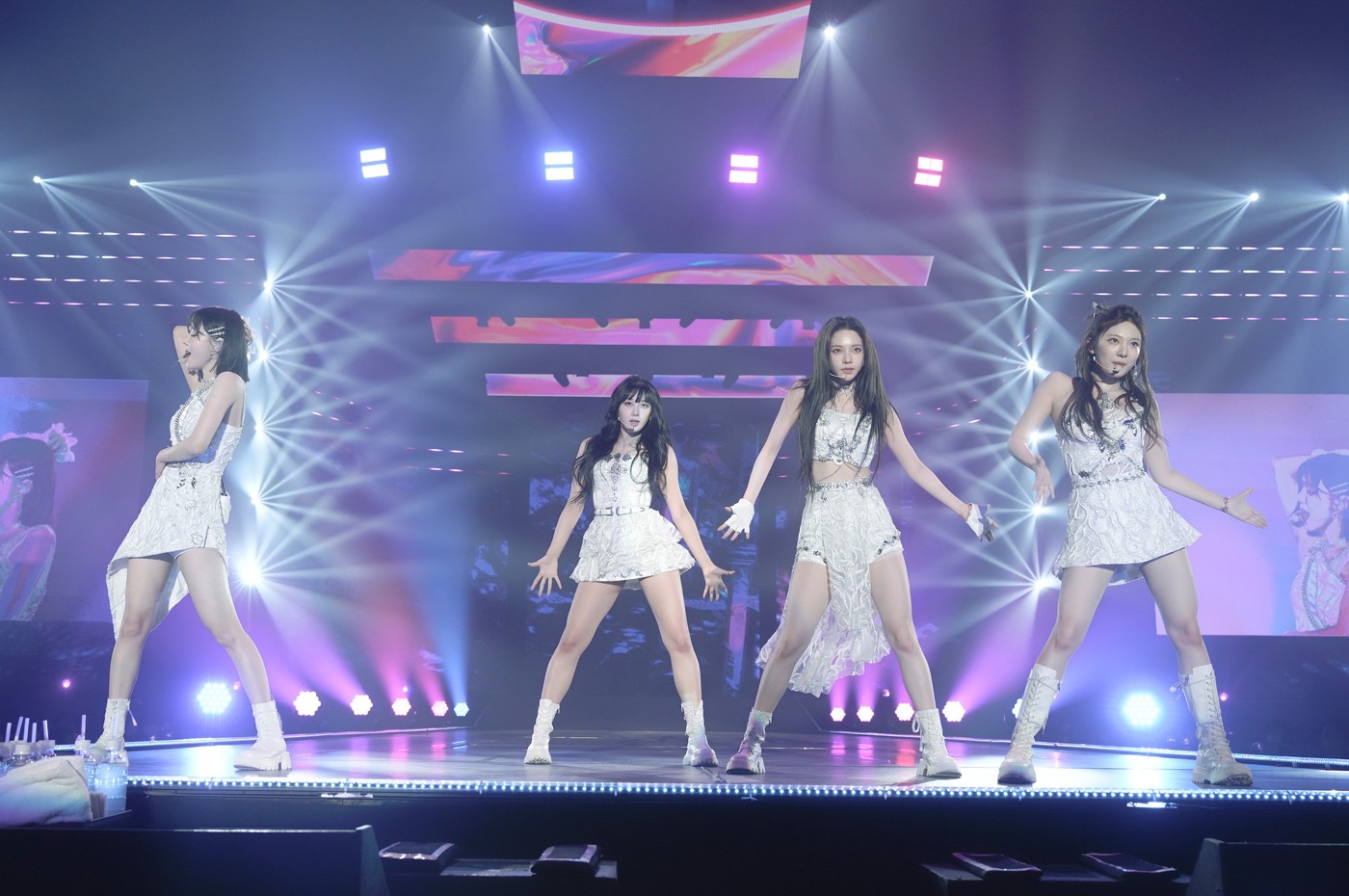 中盤は、WINTERのソロ曲「Lips」で幕開け。MCで「カッコいい女」と自己紹介していたWINTERだが、バラード曲「Lips」ではキュートな歌を聴かせた。中盤では、2022年の『Coachella Valley Music and Arts Festival』出演時に初披露した「Life’s Too Short」の英語バージョンや、新曲「I’m Unhappy」など、4人のボーカルの妙が光る曲が続いた。