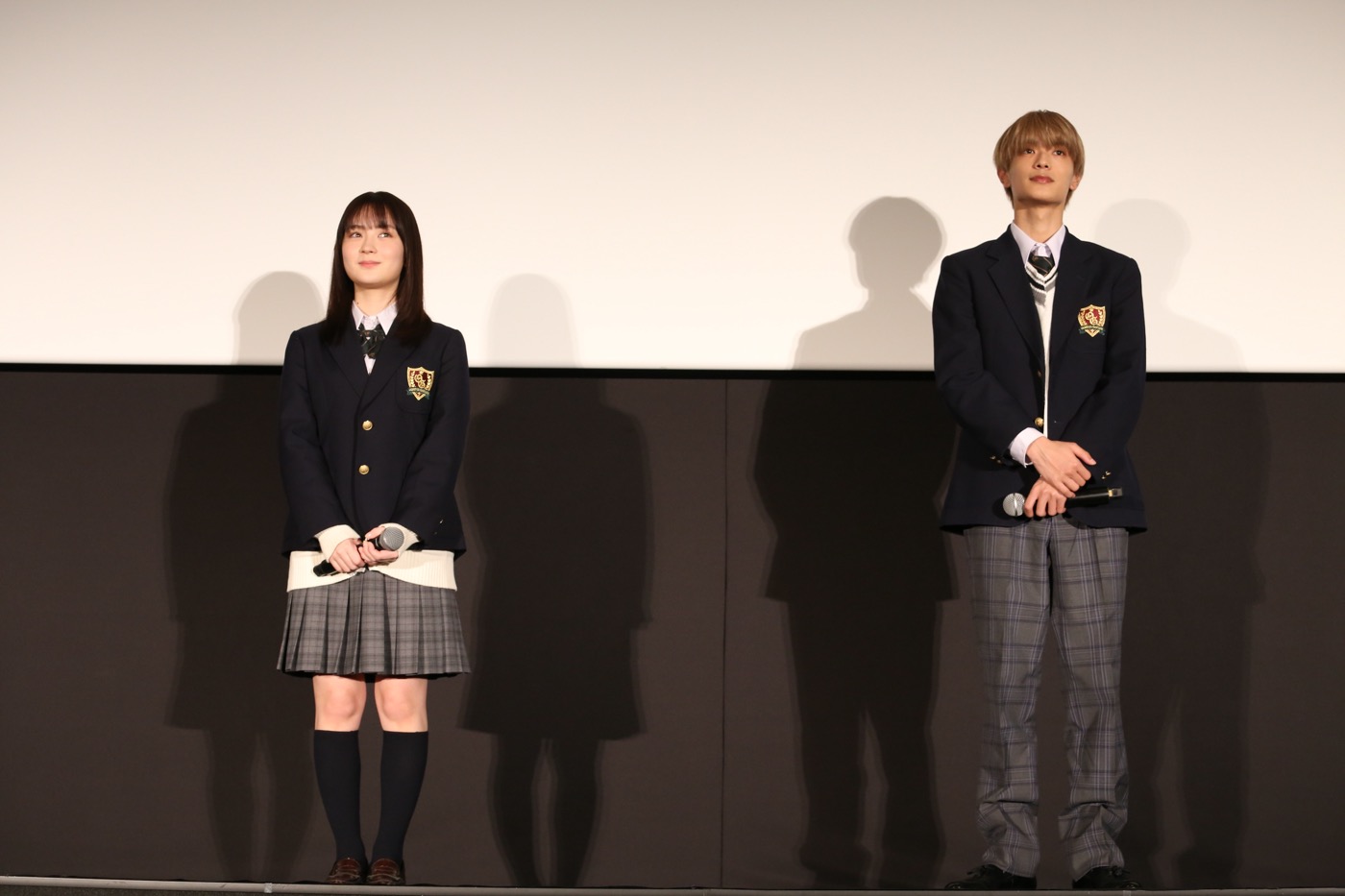 そしてこのたび、主演のなにわ男子・高橋恭平と、畑芽育が劇中でも着用した制服姿で登場し、大感謝祭舞台挨拶が実施された。