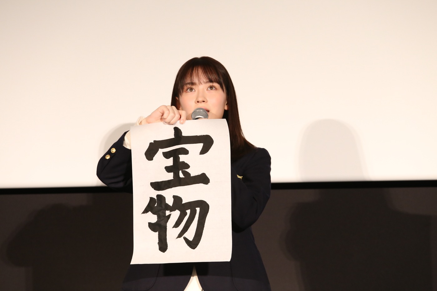畑が書いた文字は「宝物」。「これまで女優として20年間やってきましたが、初めて胸を 張って代表作と言える作品になりました。キャストもスタッフも、チーム千輝のみなさんが温かく支えてくださって、宝物のような 時間でした」と、文字に込めた想いを語った。