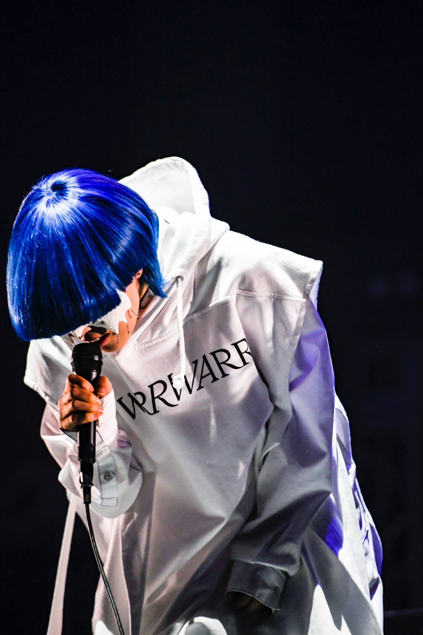 その後、「堕天」ではDJ松永の世界一を獲ったプレイを存分に披露。「俺らのライブでは、見たことが無い量のサイリウムの数があります」とR-指定がコメント。DJ松永は「昨日仙台でフェスに行ったときは「オイ! オイ!」と男らしい声が響いていました。今日は黄色い声援があってまさに水風呂とサウナの感じです。これが外気浴か~」とコメント。「武道館の中で満員でこれだけ大声で騒げるという状況も、かなり久しぶりなわけですよ。この状況を手に入れ、この素晴らしいイベントにこぎ着け、皆で声を出して一体感を出せるようになったという、このお客さんたちの色々我慢して積み重ねてきたもの、アーティストたちが積み重ねてきたもの、イベントが今から築き上げようとしているもの、しかもこのイベントまだこれが1回目、こっから来年、再来年と続いていく訳ですよ。俺たちも、このイベントも全員まだまだ“のびしろ”しかないでしょ」
