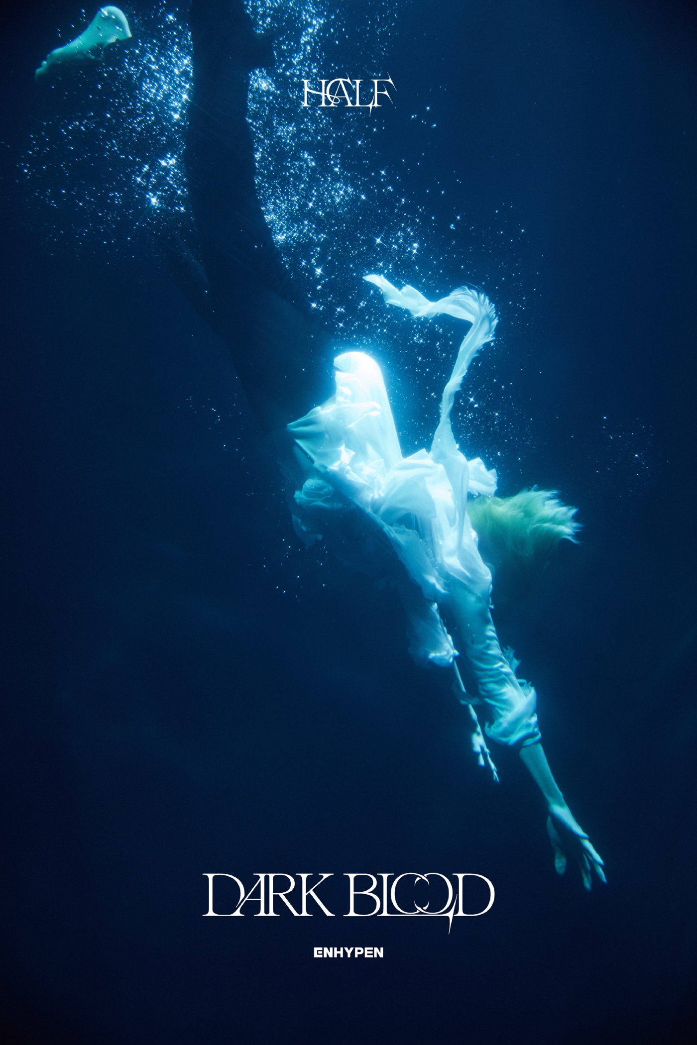 コンセプトフォトのENHYPENは、水でいっぱいの暗い空間で寂しい雰囲気を醸し出している。 彼らは憂愁に満ちた目つきで正面を眺めたり水面下を凝視するなど、個性的な視線と気品が感じられるポーズで“HALF”バージョンコンセプトを表現している。