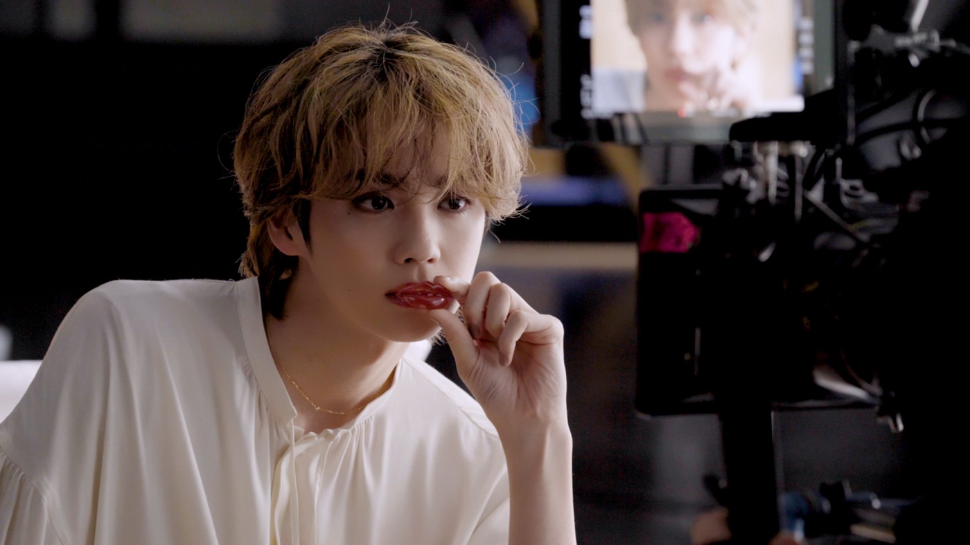 唇の模型を手に持ち、自身の唇に重ね合わせるカットでは、模型が吉野の口にぴったり。これには周りのスタッフも驚いた様子で、吉野も一緒に笑顔を見せていた。また、ツウィ同様、アドリブで様々な“唇の表情”を披露。細かい変化を付け工夫を凝らし、監督の「カット」がかかると、“やりきった!”という表情でベッドに横たわる、おちゃめな一面も見せていた。