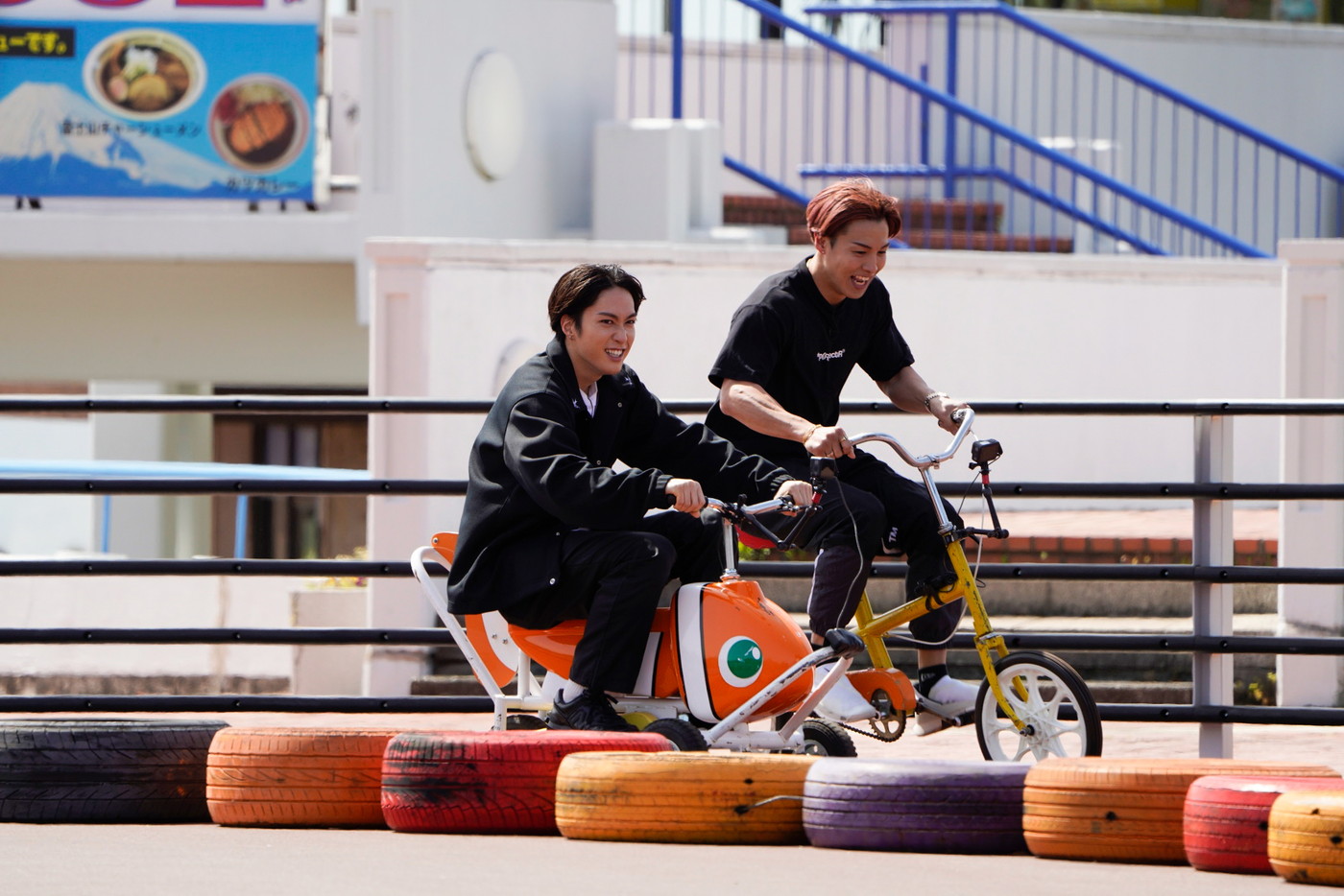 そして番組後半は、トレーニングでの数値を元にメンバーが3チームに分かれてチーム対抗戦へ。公道では乗ることができないユニークな形をした自転車を使用し、白熱したレースが行われる。