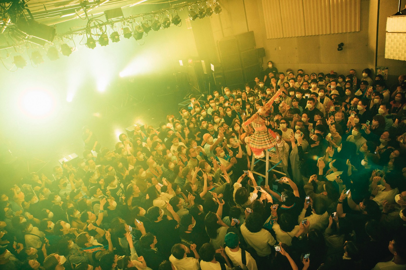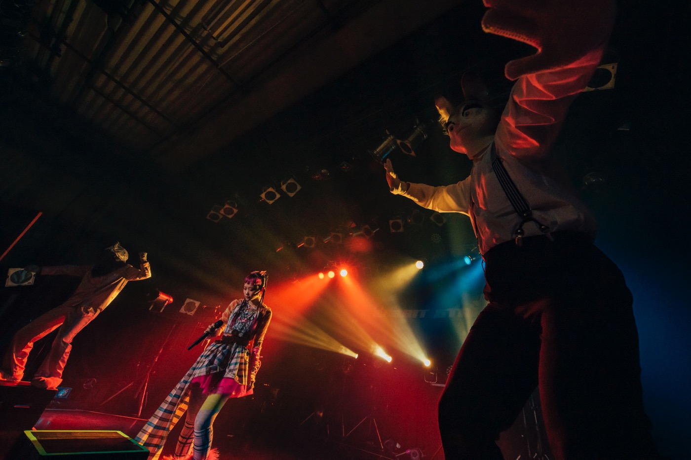 5曲目の「シャドウ」では、忍者が段ボールでできた車持って突如登場するという一幕があり、歌詞に合わせた演出でサラリと歌詞の伏線を回収する。8曲目の「鍋奉行」では、「私の合図でクルクル回ってね!」と鍋で具材を混ぜるように、詩羽の合図と歌唱に合わせて会場にサークルモッシュを起こし、会場全体をひとつにしていく。そして、今作のEPの1曲目でもある「赤ずきん」は、おばあちゃんに扮したオオカミダンサーを迎え、可愛らしい踊りを披露し観客を魅了していった。